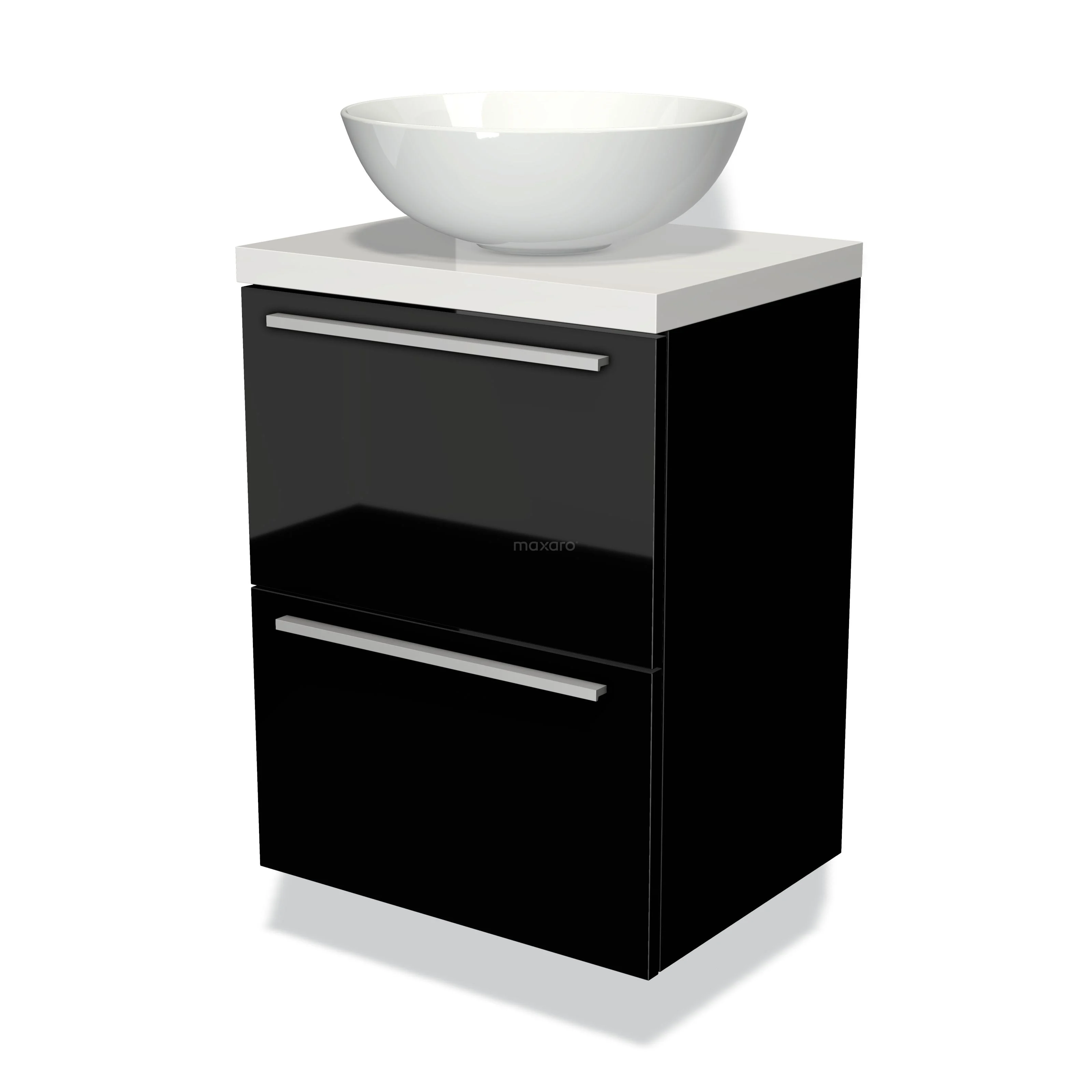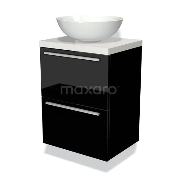 Waschtischunterschrank mit Konsole 50cm Modulo Plato Slim Hochglanz Schwarz 2 Schubladen Flach