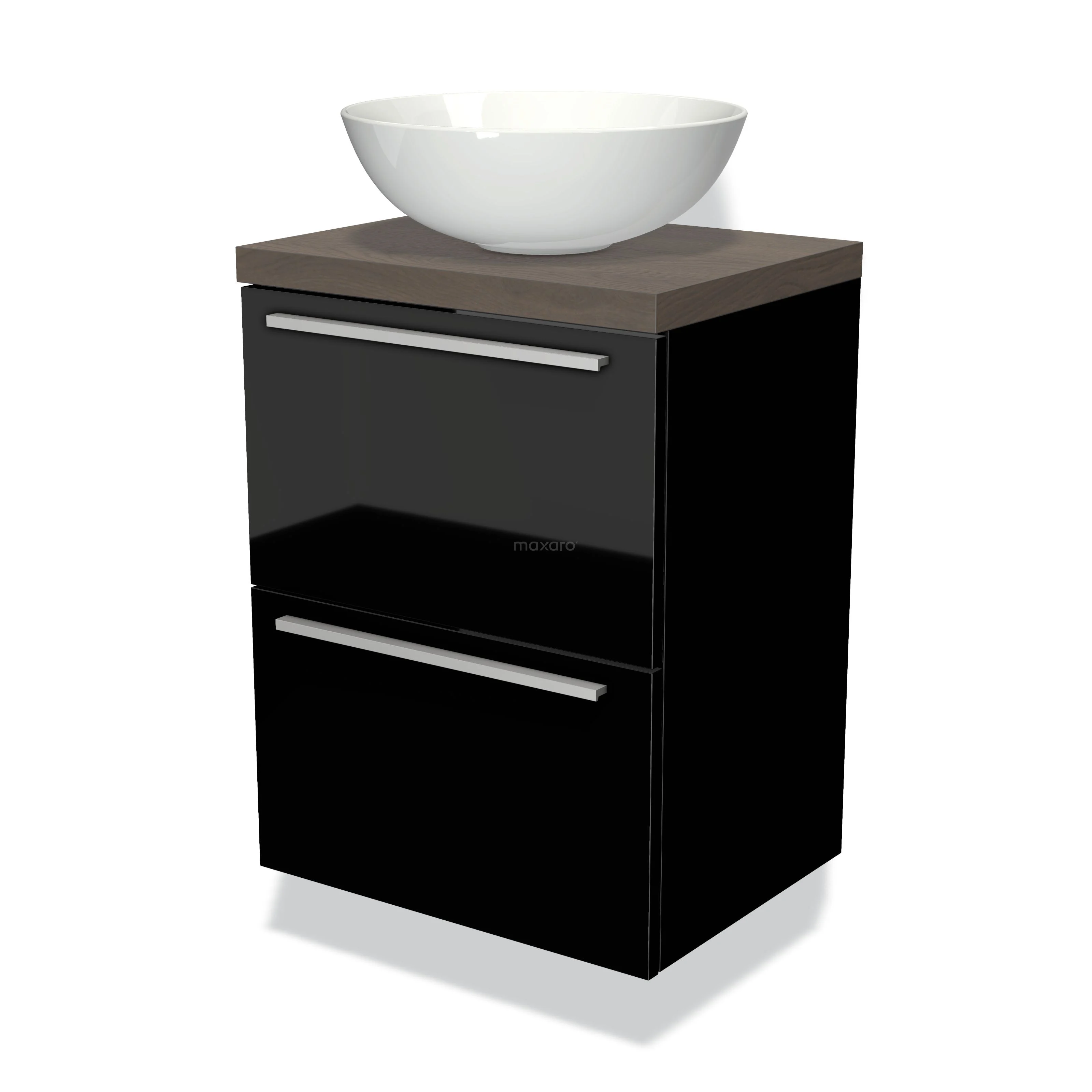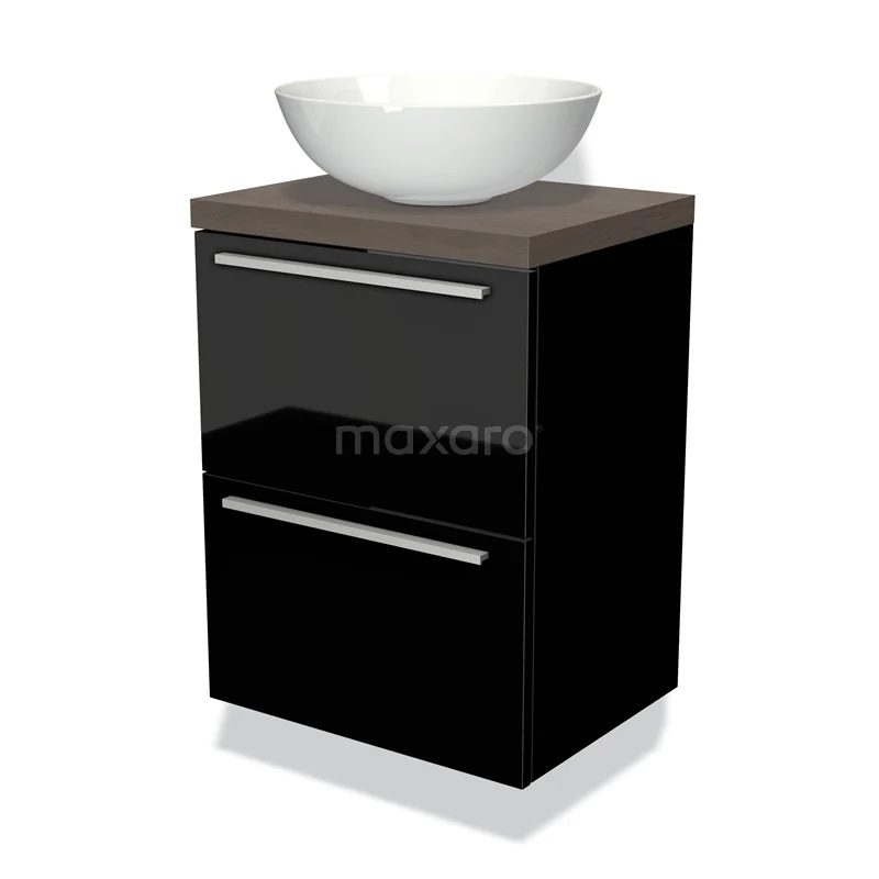 Waschtischunterschrank mit Konsole 50cm Modulo Plato Slim Hochglanz Schwarz 2 Schubladen Flach