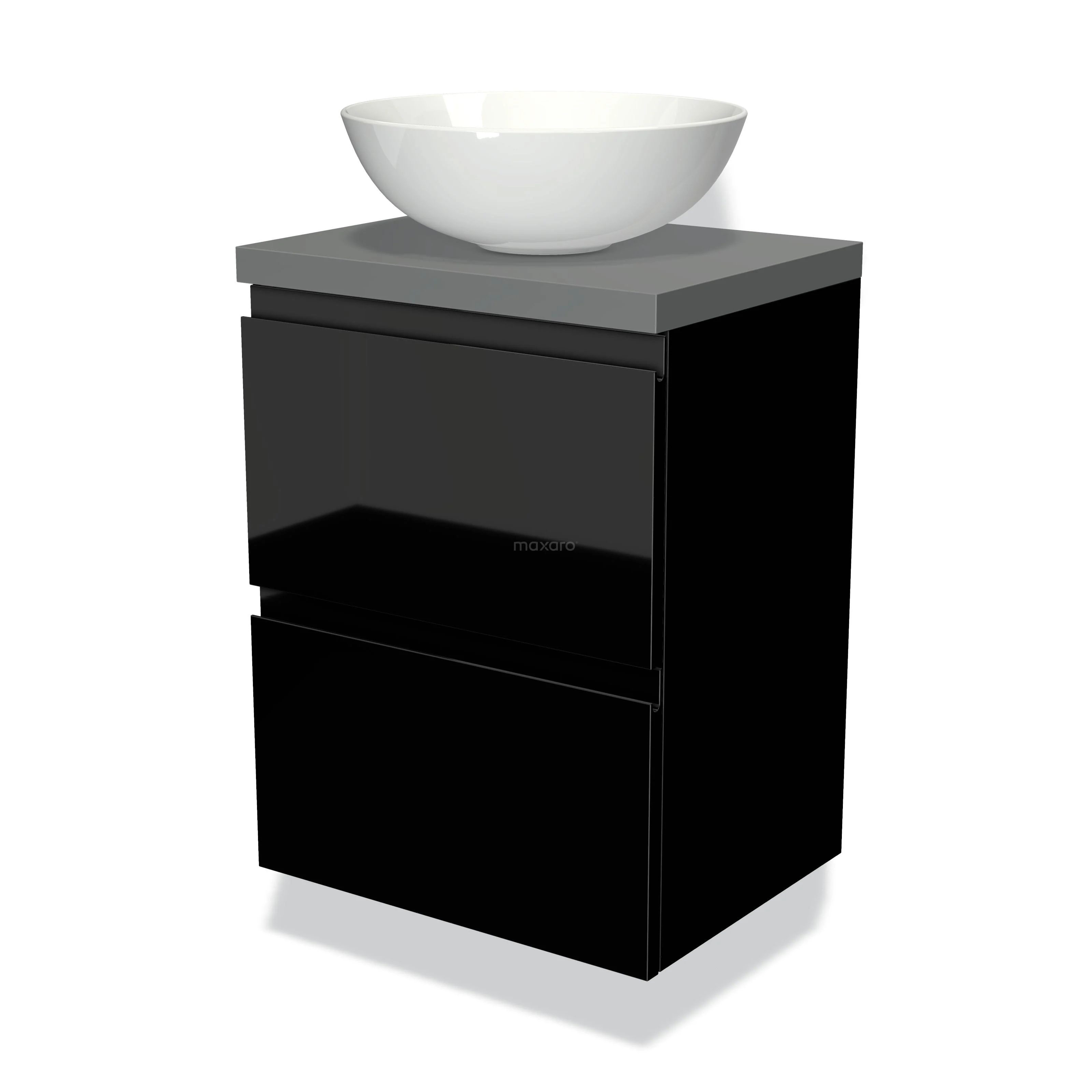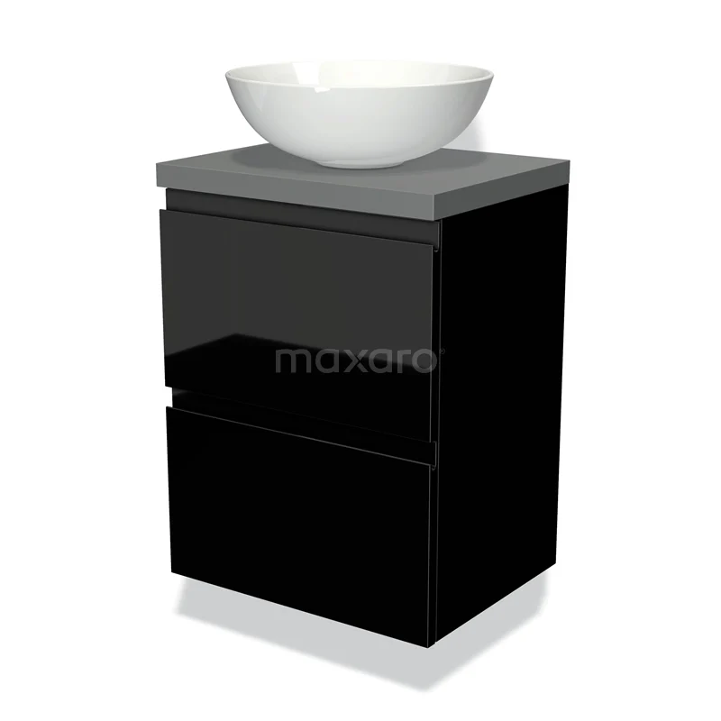 Waschtischunterschrank mit Konsole 50cm Modulo Plato Slim Hochglanz Schwarz 2 Schubladen Grifflos