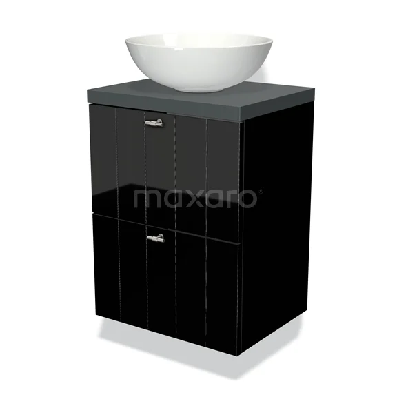 Waschtischunterschrank mit Konsole 50cm Modulo Plato Slim Hochglanz Schwarz 2 Schubladen Slat