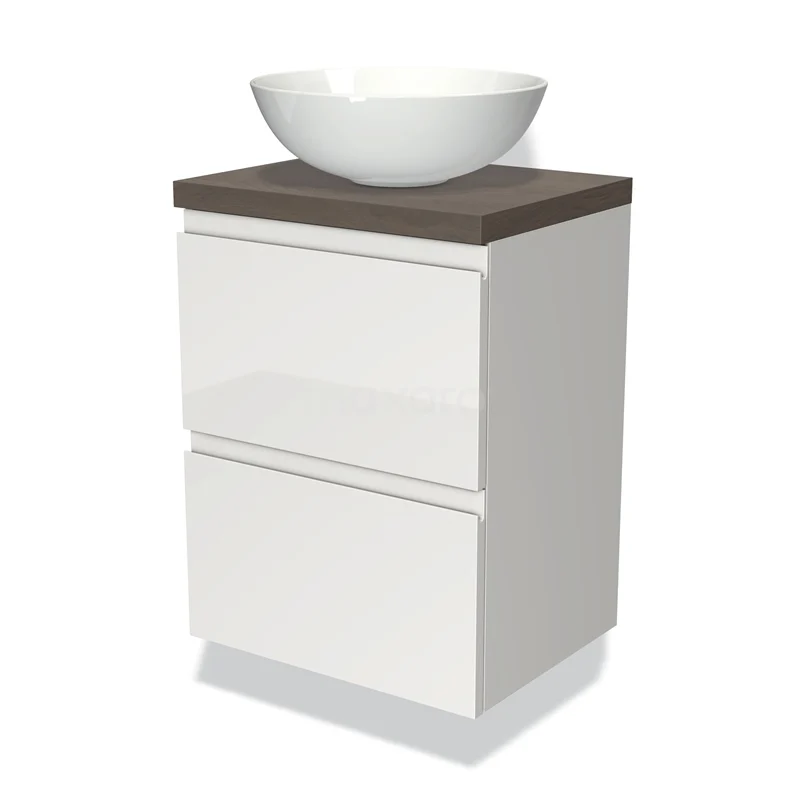 Waschtischunterschrank mit Konsole 50cm Modulo Plato Slim Hochglanz Weiß 2 Schubladen Grifflos