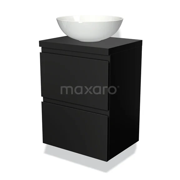 Waschtischunterschrank mit Konsole 50cm Modulo Plato Slim Matt Schwarz 2 Schubladen Grifflos