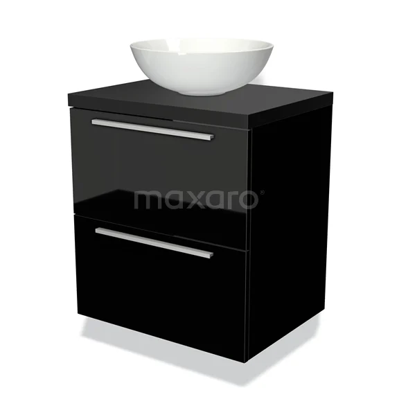 Waschtischunterschrank mit Konsole 60cm Modulo Plato Hochglanz Schwarz 2 Schubladen Flach Matt Schwarz Platte