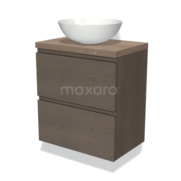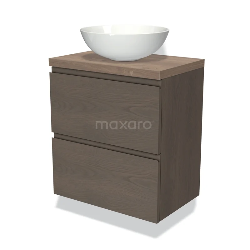 Waschtischunterschrank mit Konsole 60cm Modulo Plato Slim dunkelbraune Eiche 2 Schubladen grifflos