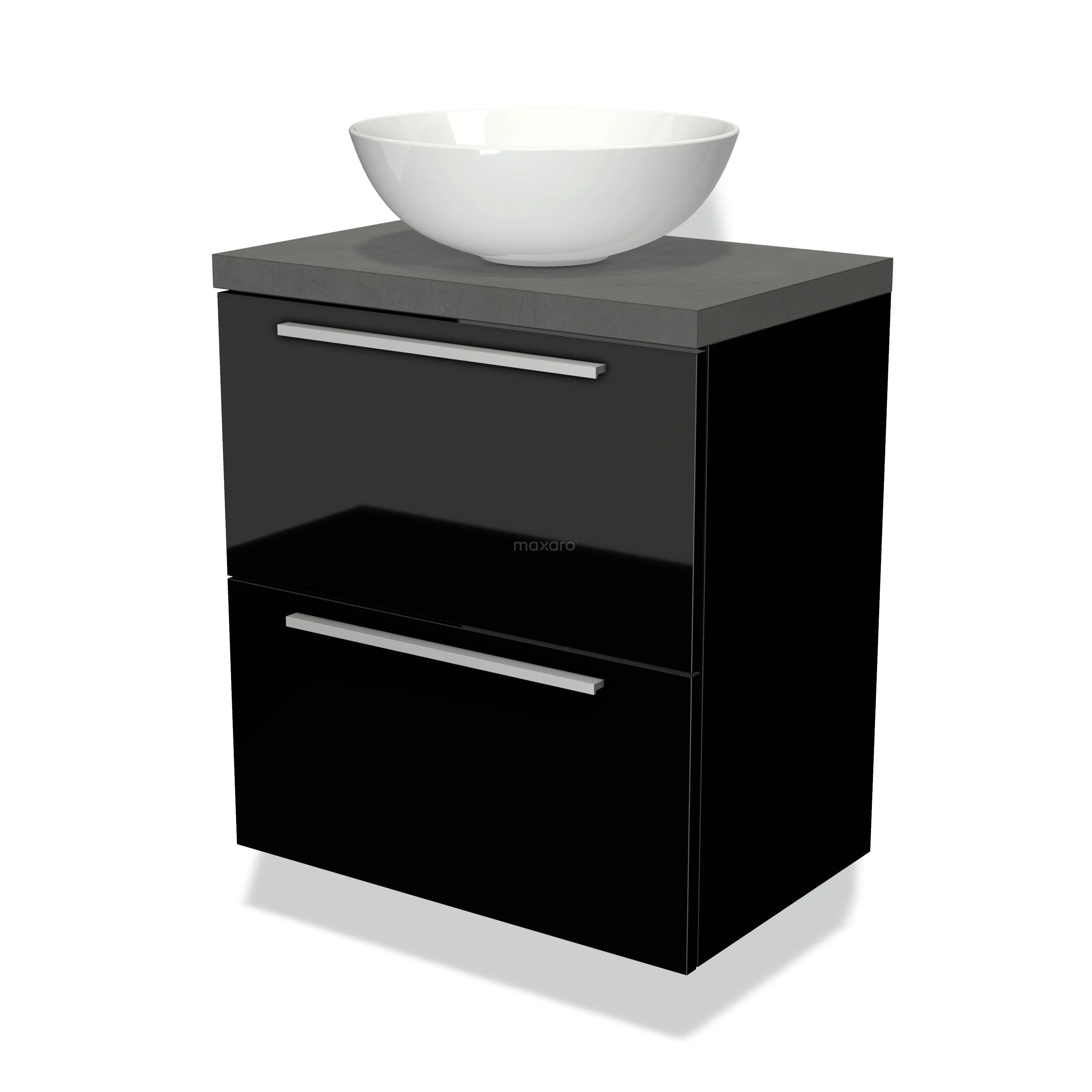 Waschtischunterschrank mit Konsole 60cm Modulo Plato Slim Hochglanz Schwarz 2 Schubladen Flach