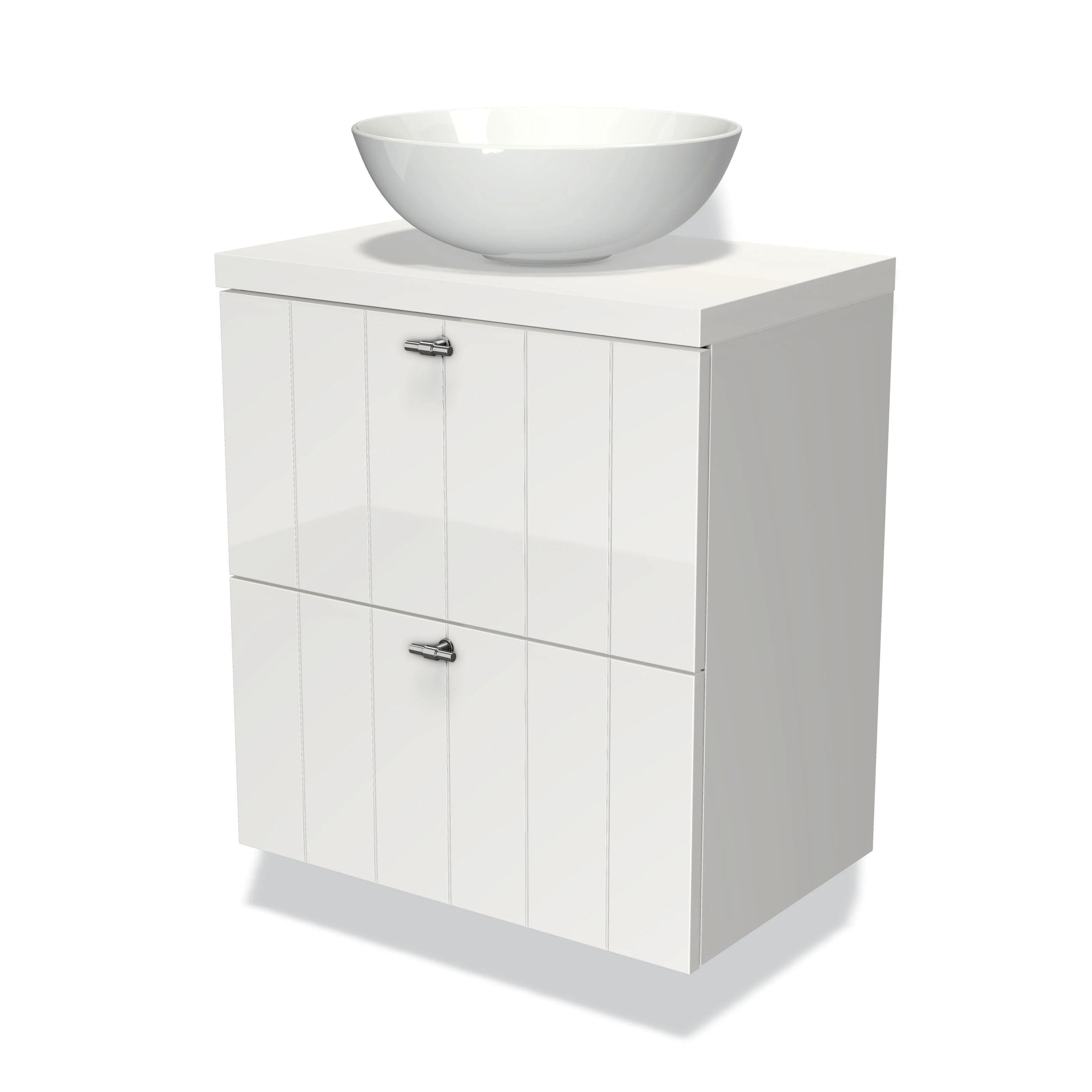 Badmöbel 60cm + 2 Haltegriffe + Aufsatzwaschbecken schlank