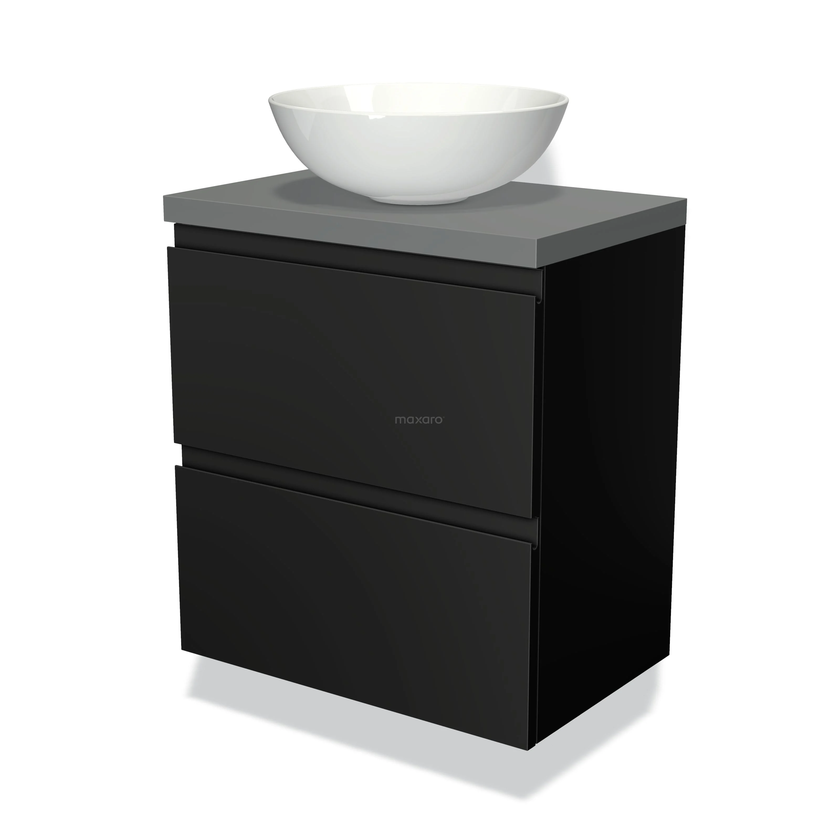 Waschtischunterschrank mit Konsole 60cm Modulo Plato Slim Matt Schwarz 2 Schubladen Grifflos