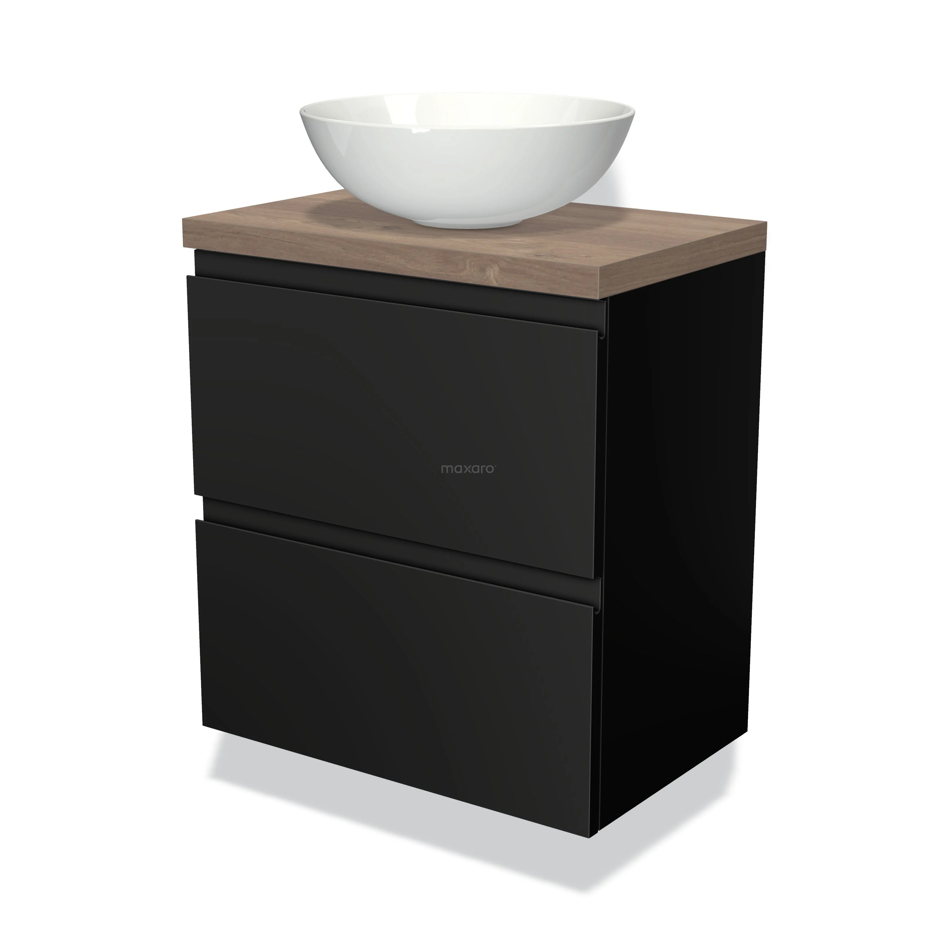 Waschtischunterschrank mit Konsole 60cm Modulo Plato Slim Matt Schwarz 2 Schubladen Grifflos