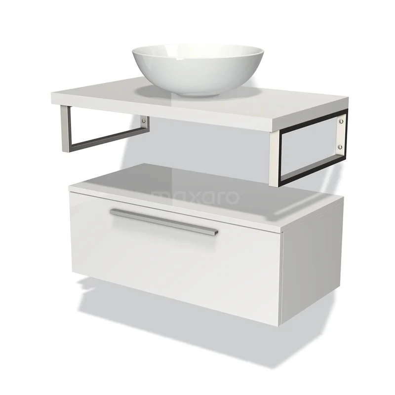Waschtischunterschrank mit Konsole 80 cm Modulo Plato Hochglanz Weiß 1 Schublade Flach