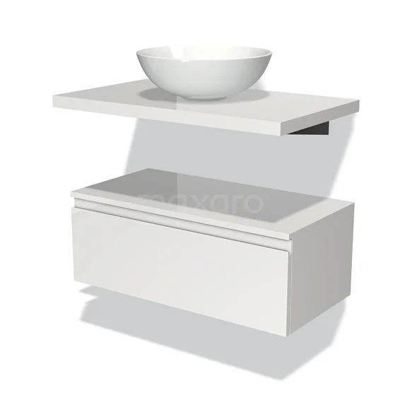 Waschtischunterschrank mit Konsole 80 cm Modulo Plato Hochglanz Weiß 1 Schublade grifflos