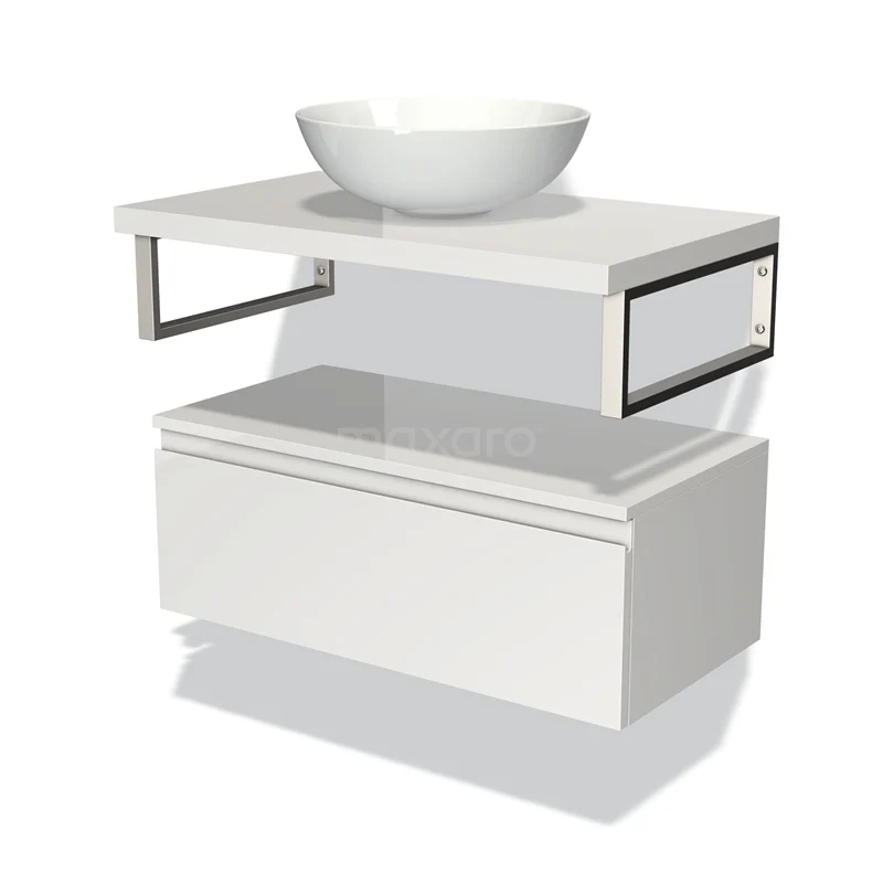 Waschtischunterschrank mit Konsole 80 cm Modulo Plato Hochglanz Weiß 1 Schublade grifflos