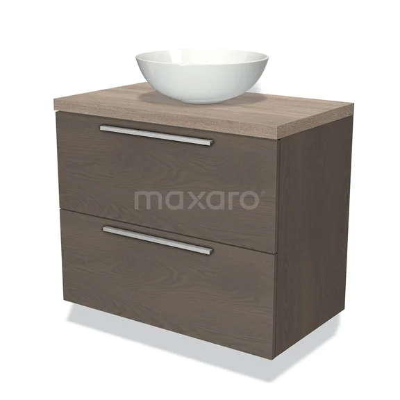 Waschtischunterschrank mit Konsole 80cm Modulo Plato dunkelbraune Eiche 2 Schubladen Flache Platte aus Eiche