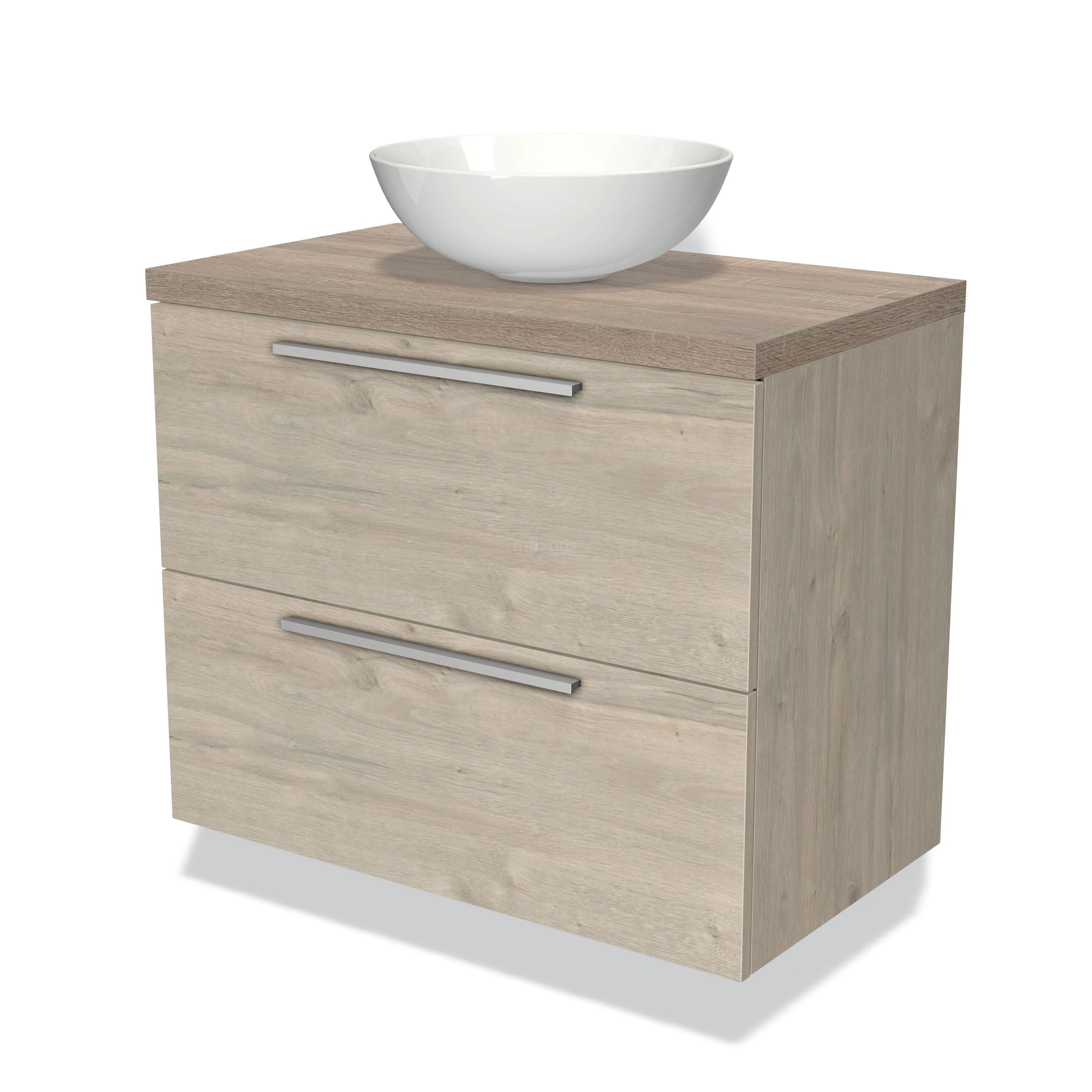 Waschtischunterschrank mit Konsole 80cm Modulo Plato Hellgraue Eiche 2 Schubladen Flache Platte aus Eiche