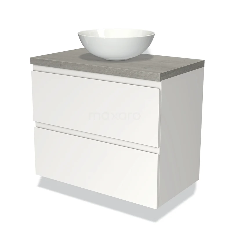 Waschtischunterschrank mit Konsole 80cm Modulo Plato Matt Weiß 2 Schubladen Grifflos Graue Eiche Platte