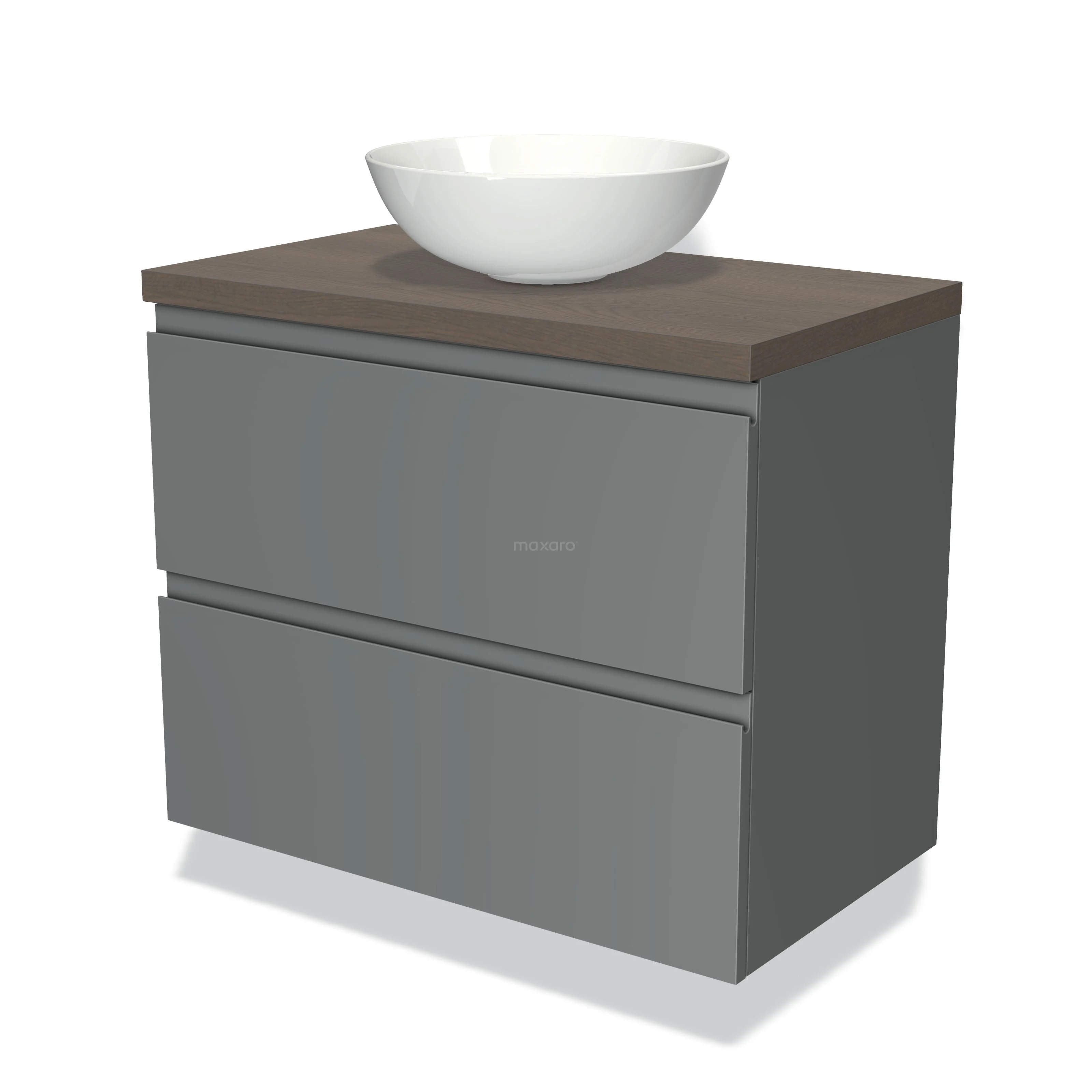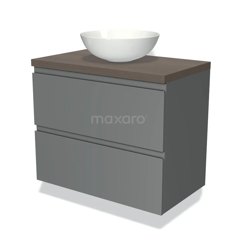 Waschtischunterschrank mit Konsole 80cm Modulo Plato Mittelgrau 2 Schubladen Grifflos dunkelbraune Eiche Platte