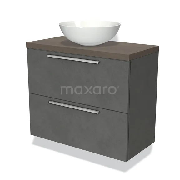 Waschtischunterschrank mit Konsole 80cm Modulo Plato Slim Dunkelgrau Beton 2 Schubladen Flach