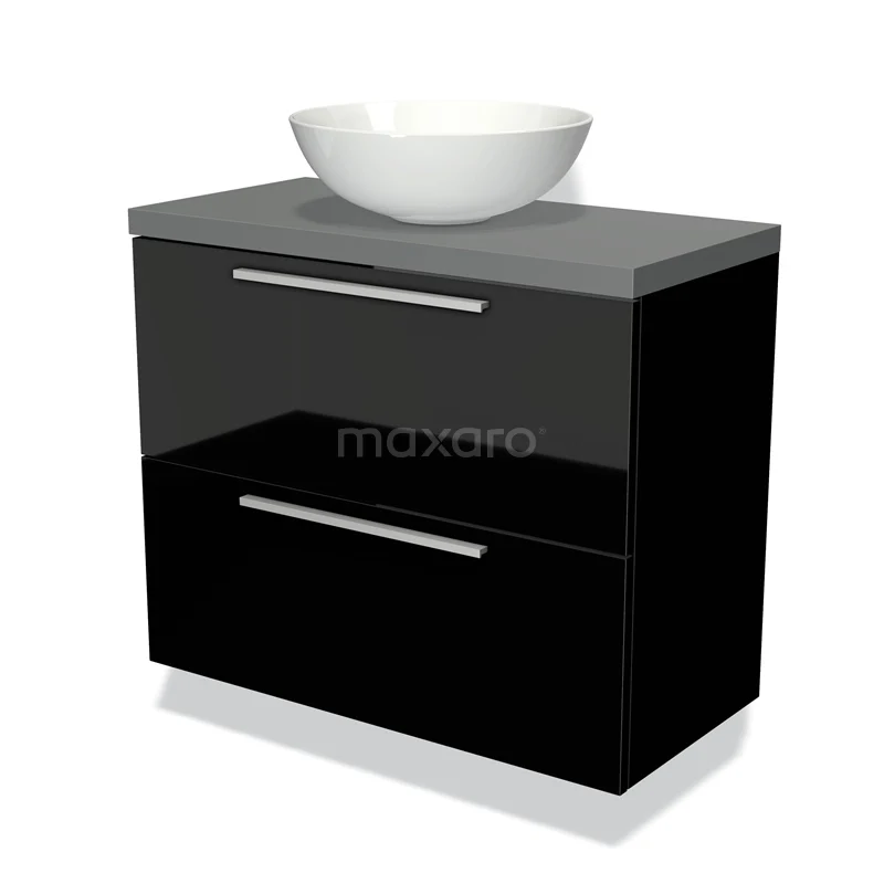 Waschtischunterschrank mit Konsole 80cm Modulo Plato Slim Hochglanz Schwarz 2 Schubladen Flach