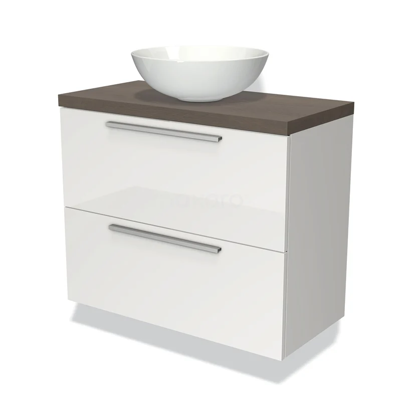 Waschtischunterschrank mit Konsole 80cm Modulo Plato Slim Hochglanz Weiß 2 Schubladen Flach