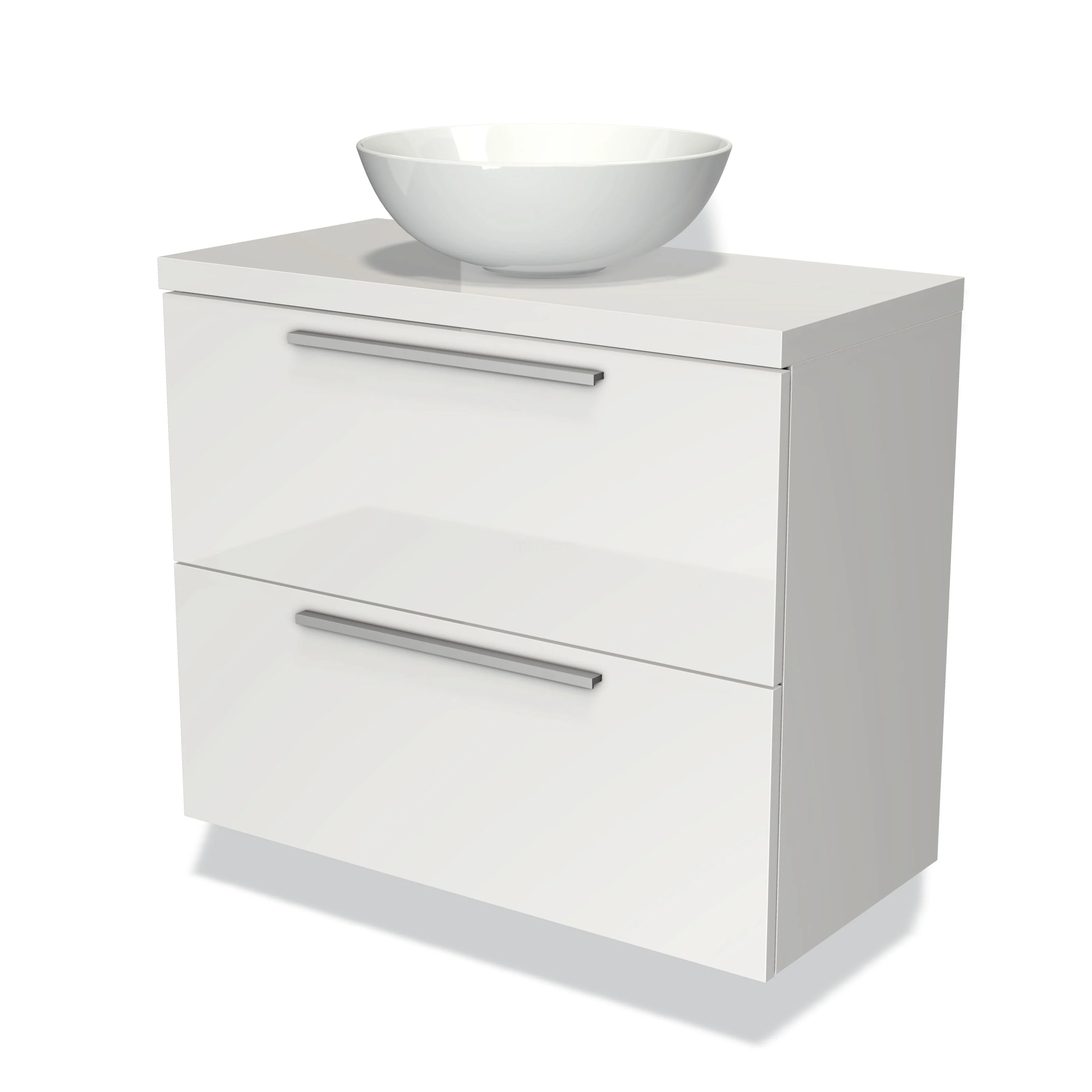 Waschtischunterschrank mit Konsole 80cm Modulo Plato Slim Hochglanz Weiß 2 Schubladen Flach
