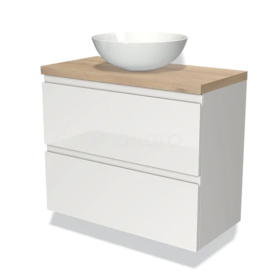 Waschtischunterschrank mit Konsole 80cm Modulo Plato Slim Hochglanz Weiß 2 Schubladen Grifflos