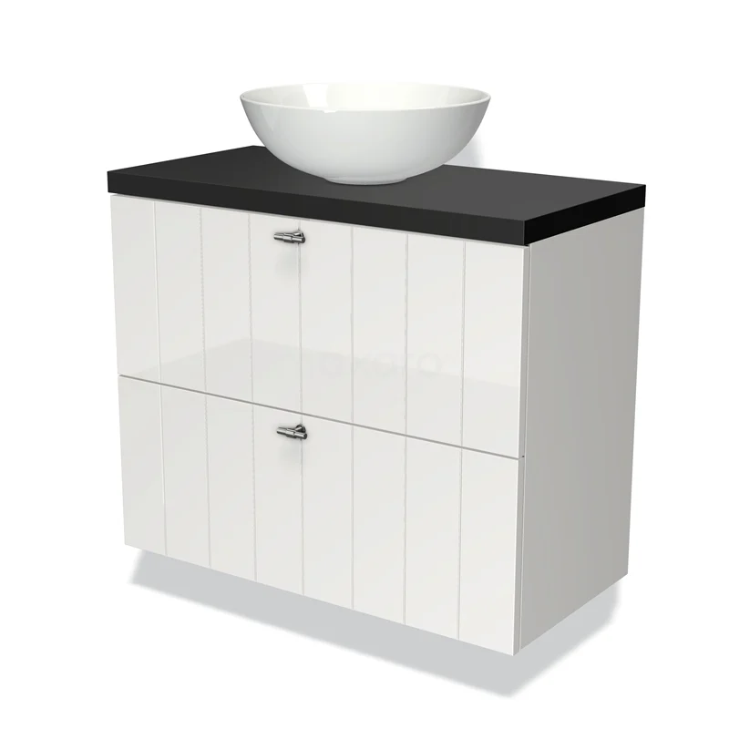Waschtischunterschrank mit Konsole 80cm Modulo Plato Slim Hochglanz Weiß 2 Schubladen Laminat