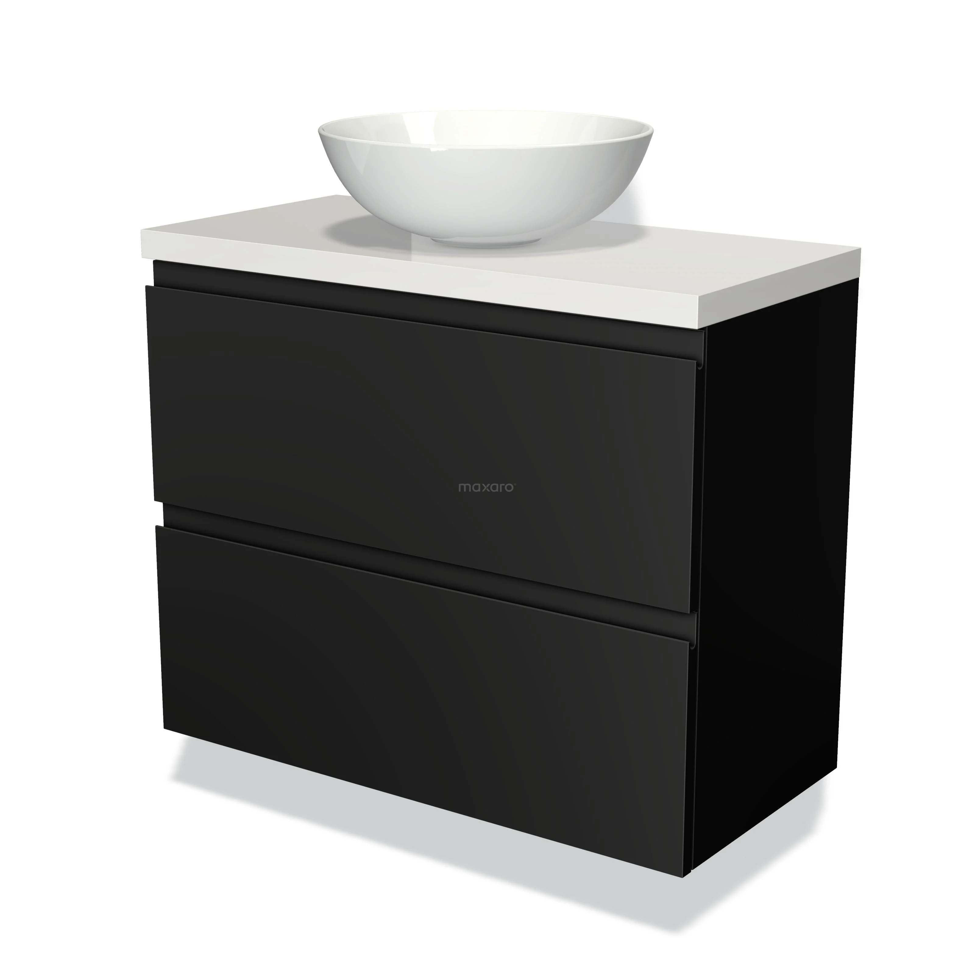Waschtischunterschrank mit Konsole 80cm Modulo Plato Slim Matt Schwarz 2 Schubladen Grifflos