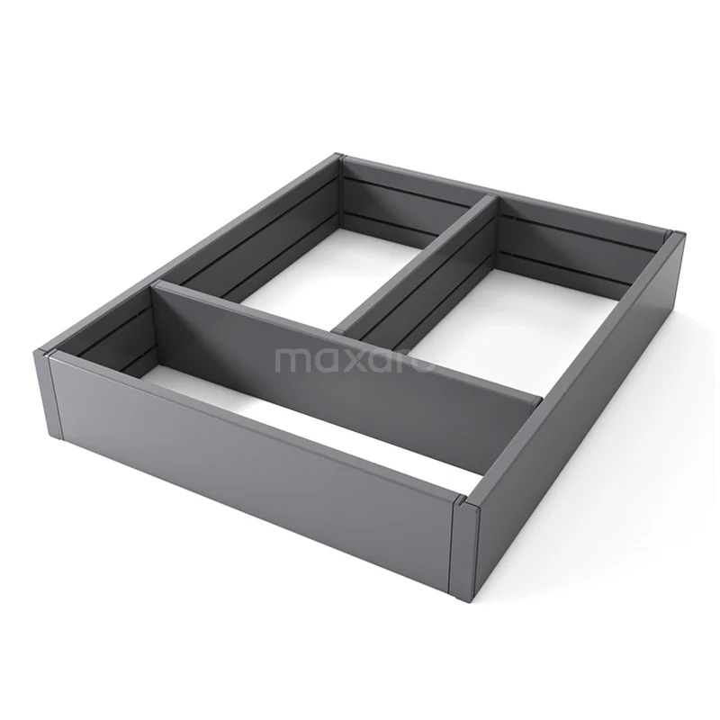 Individuelles Layout Die dunkelgraue Trennwand lässt sich leicht nach Ihren Wünschen einrichten. Die Größe der Ablagefächer bestimmen Sie durch die 2 mittleren Einlegeböden. Außerdem können Sie die Einteilung des Schubladeneinsatzes immer wieder ändern.