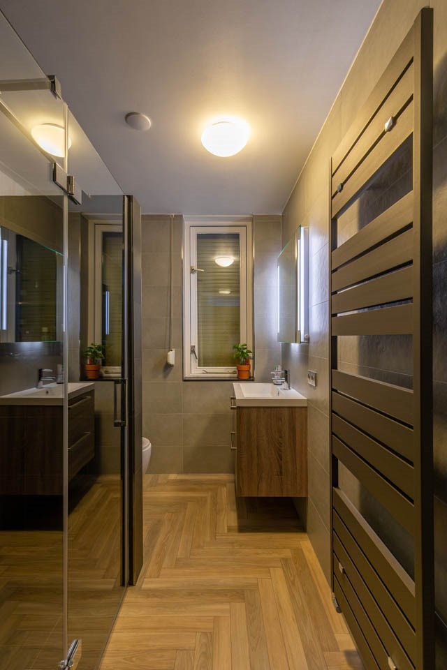 Ein schmales Badezimmer ist durchschnittlich 2 mal 3 Meter. In einem Raum dieser Größe passen oft ein WC, Badmöbel, Dusche und sogar ein Bad. Die Menge an Bewegungsraum, die du übrig hast, wird durch die Größe der Badezimmerelemente bestimmt. Möchtest du gerne ein Bad é und eine Dusche? Dann hast du Platz für eine Duschkabine von 80x80 cm oder eine Duschkabine von 90x90 cm. Findest du die Dusche wichtiger als ein Bad? Nimm dann zum Beispiel eine großzügige begehbare Dusche. Das Schöne an einer räumlichen Gestaltung ist, dass sie für Ruhe im Raum sorgt. Außerdem lässt du das Badezimmer größer wirken.