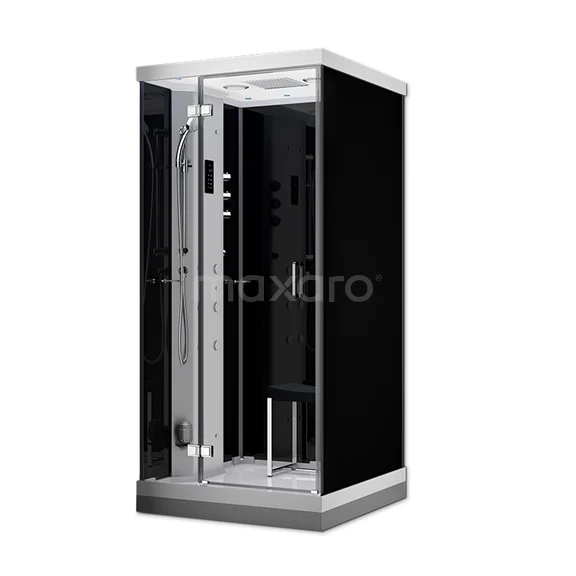 Die Dampfkabine ist äußerst pflegeleicht. Für die Wartung ist die Kabine mit einer Servicetür ausgestattet. Dadurch sind alle Komponenten von innen zugänglich, ohne dass Sie die Dampfkabine bewegen müssen. Außerdem hat dieses Modell eine Abflussrinne an der Unterseite der Tür, sodass Wassertropfen nicht auf den Boden fallen.