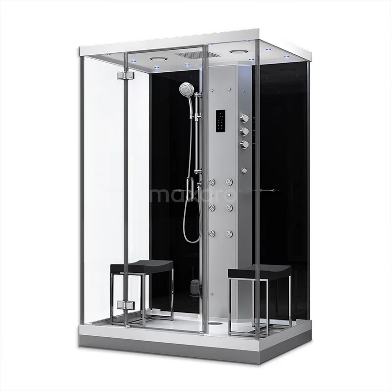 Design Die Dampfkabine hat eine großzügige Größe von 140x100 cm und bietet 2 Benutzersitze, so dass Sie und Ihr Partner sie in vollen Zügen genießen können. Dieses Modell hat ein rechteckiges Design und ist mit 8 mm klarem und weißem Sicherheitsglas ausgestattet. Zusammen mit den transparenten Kunststoffprofilen ergibt sich ein modernes Erscheinungsbild. Die Duschwanne / Duschtasse aus Mineralguss und das Dach sind perfekt aufeinander abgestimmt.