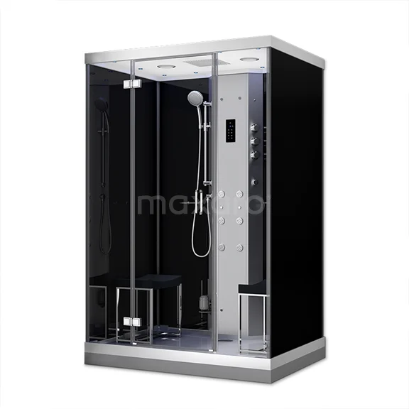 Lusso Zweipersonen-Dampfkabine | 140x100 cm Schwarz Glas Drehtür Rechteck