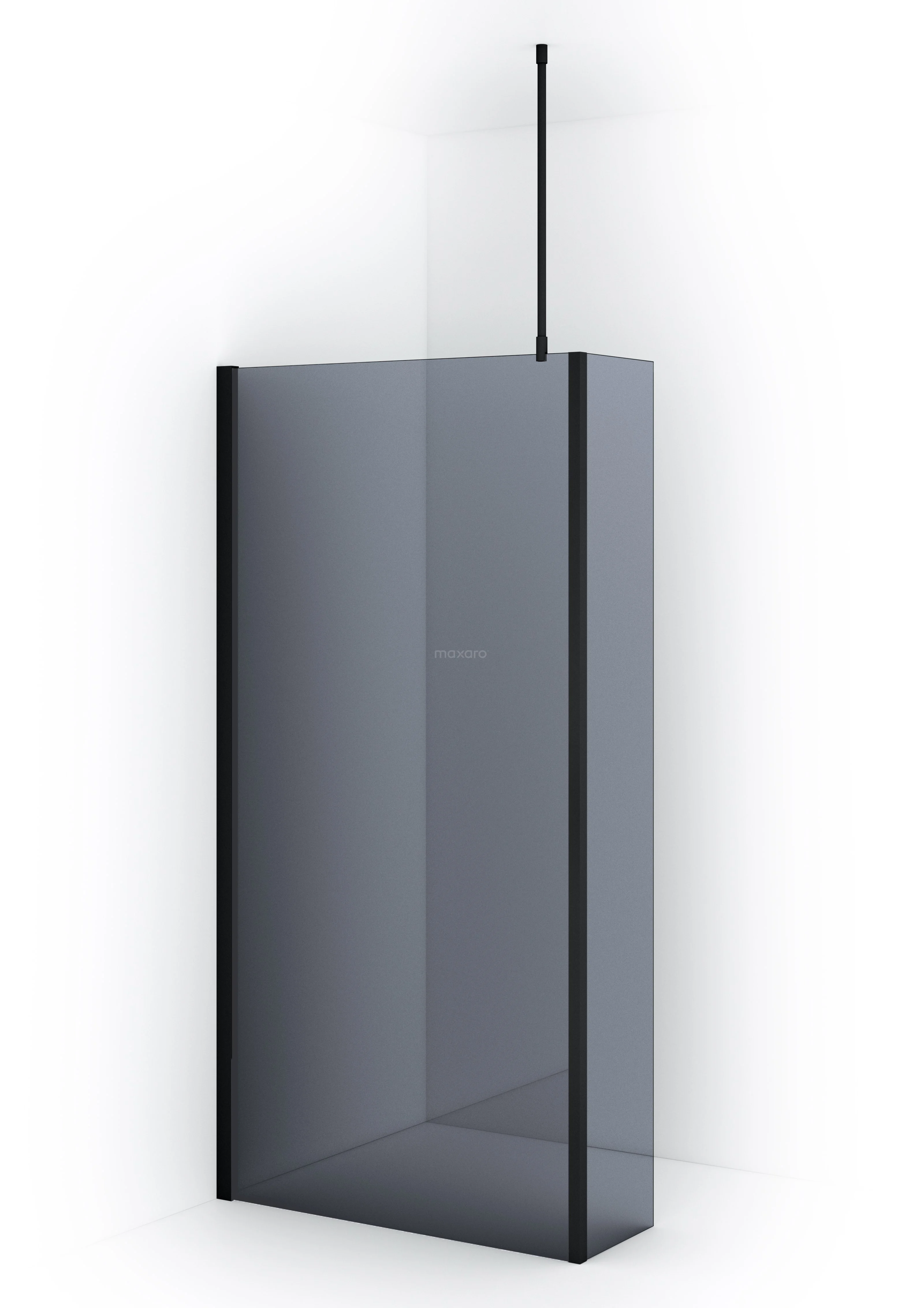 Begehbare Dusche Diamant 90cm mit Seitenwand 8mm Rauchglas Sicherheitsglas Matt Schwarz
