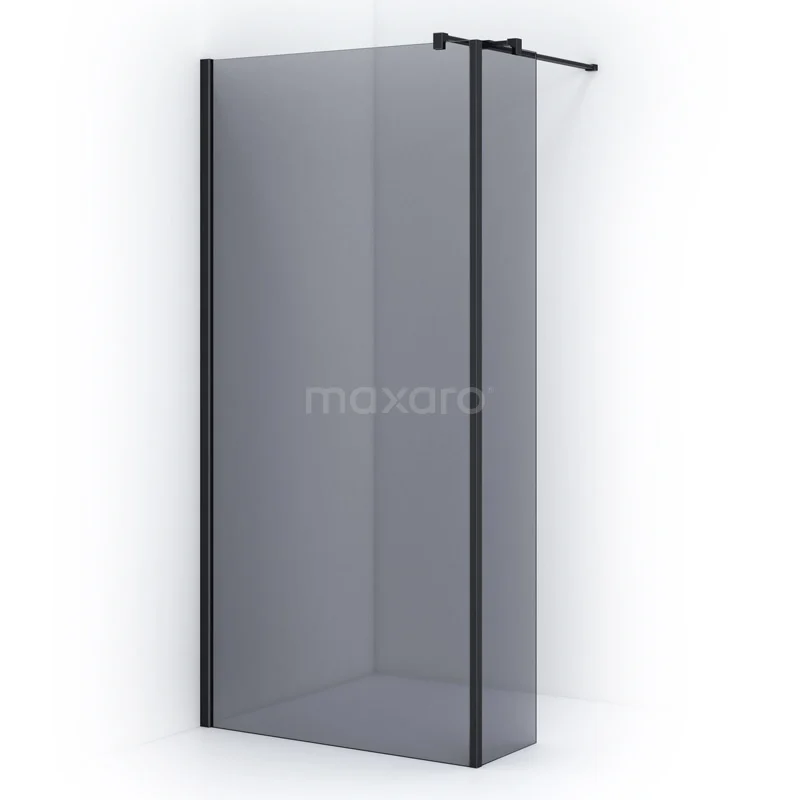 Begehbare Dusche mit Seitenwand Perle 100cm Rauchglas Sicherheitsglas 8mm Matt Schwarz