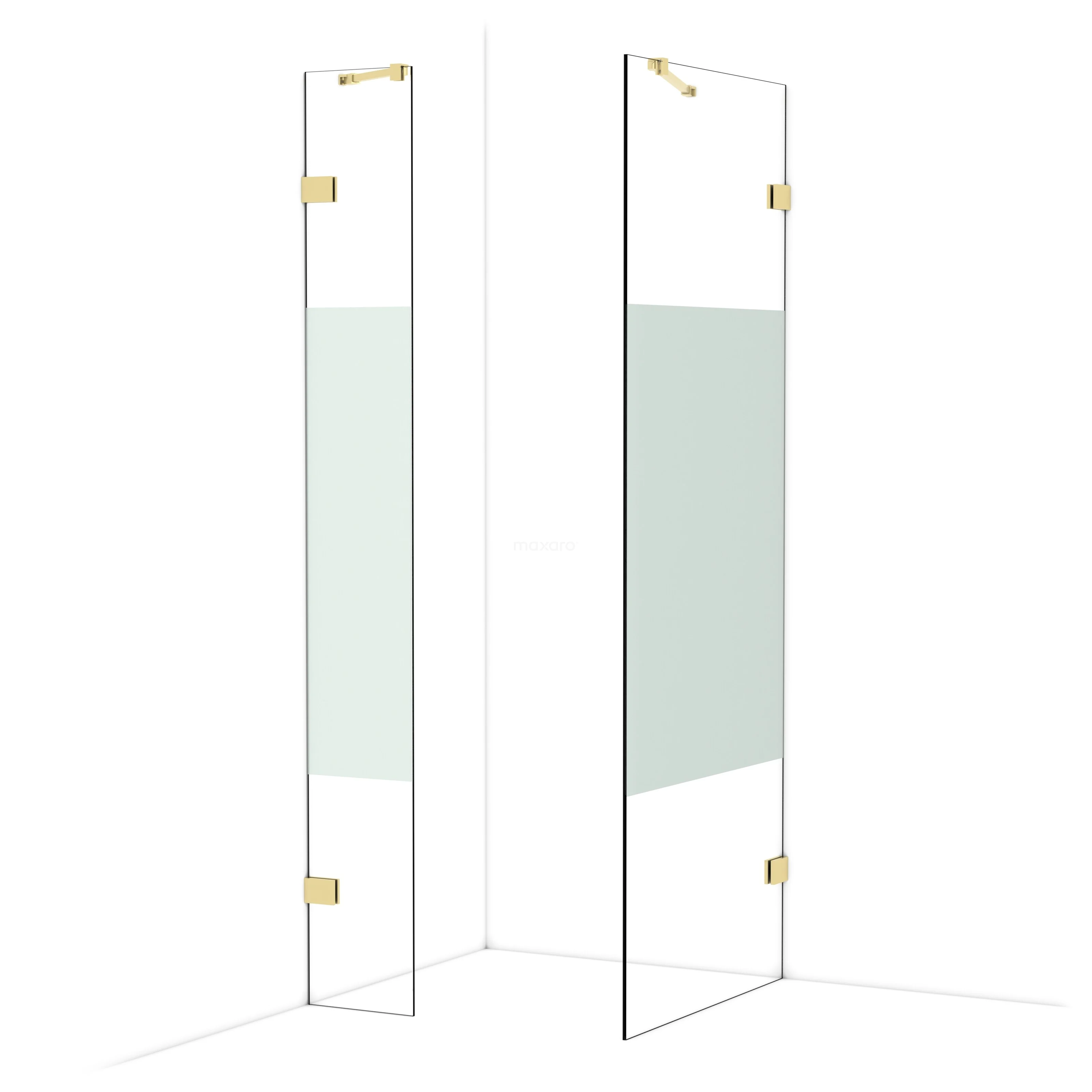 In der stilvollen begehbaren Dusche Diamond mit den Maßen 80x30 cm können Sie jeden Tag herrliche Duschsitzungen genießen. Sie hat ein raffiniertes und luxuriöses Design in glänzendem Hellgold und verfügt über Klarglas mit mattem Streifen für mehr Privatsphäre.