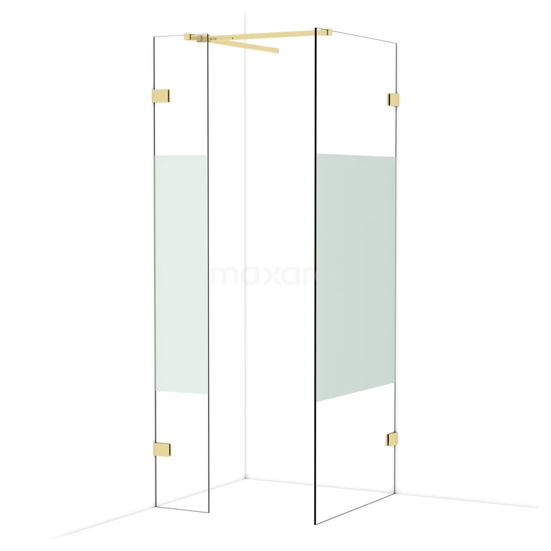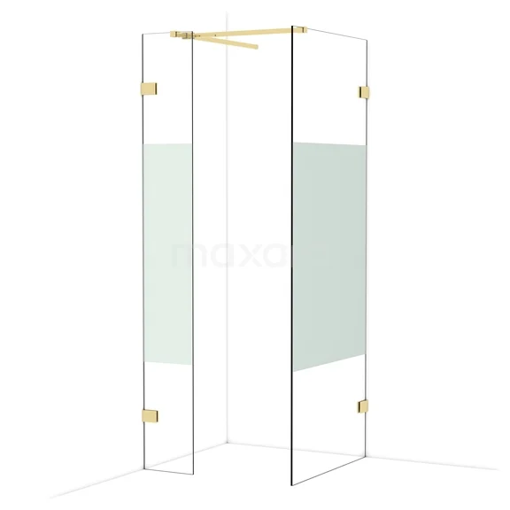In der stilvollen begehbaren Dusche Diamond mit den Maßen 80x30 cm können Sie jeden Tag herrliche Duschsitzungen genießen. Sie hat ein raffiniertes und luxuriöses Design in glänzendem Hellgold und verfügt über Klarglas mit mattem Streifen für mehr Privatsphäre.