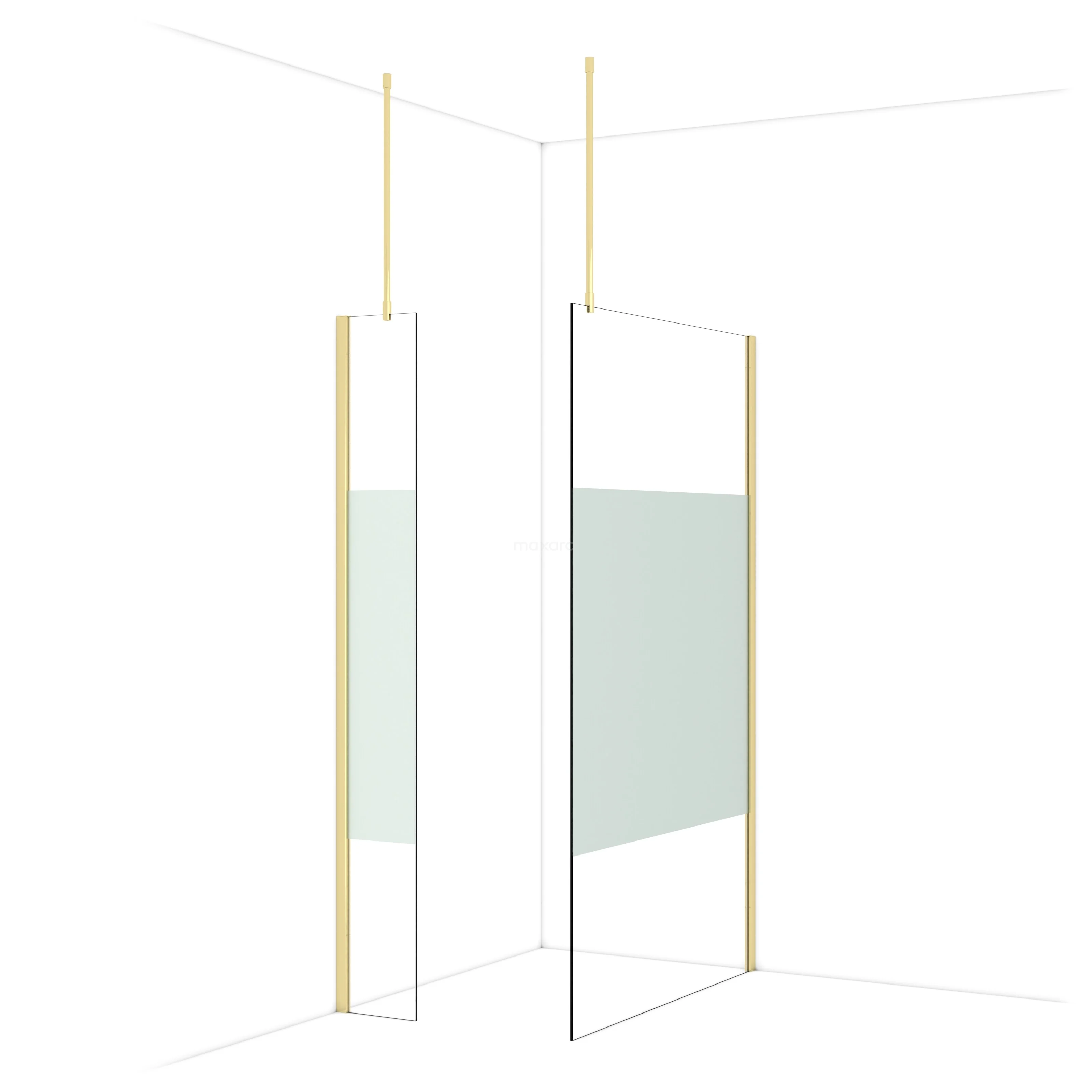 De glaswand is gespiegeld te monteren.