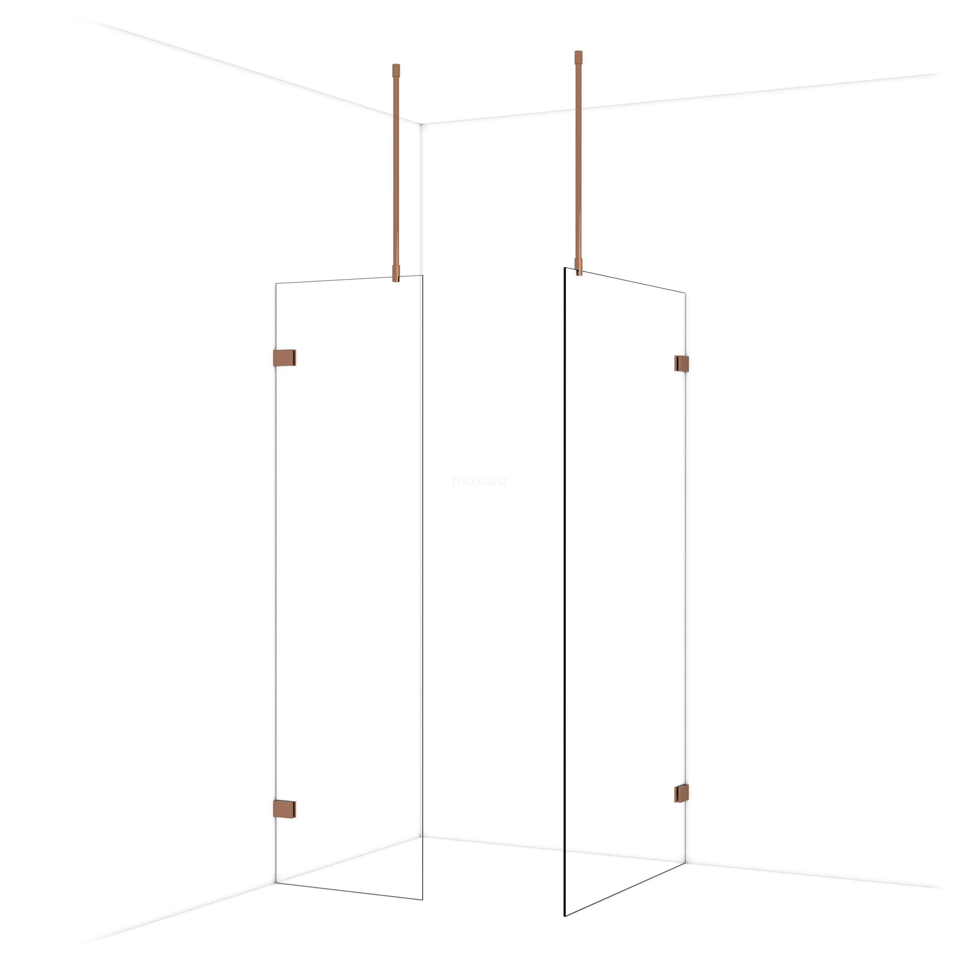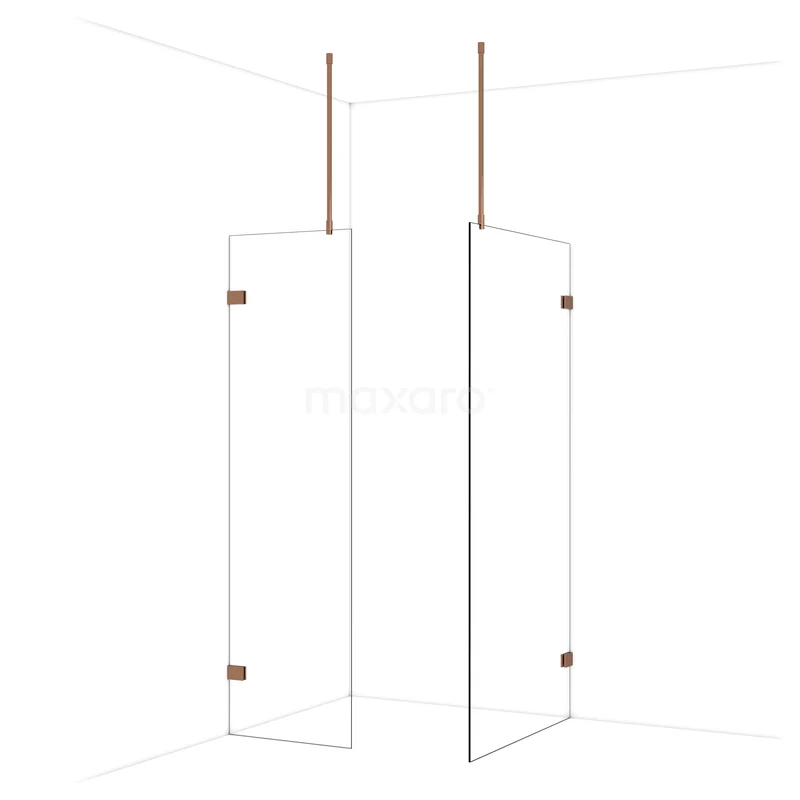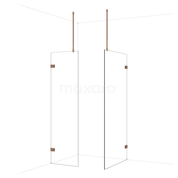 Diamond begehbare Dusche | 100x60 cm Glänzendes Kupfer 2 feste Wände