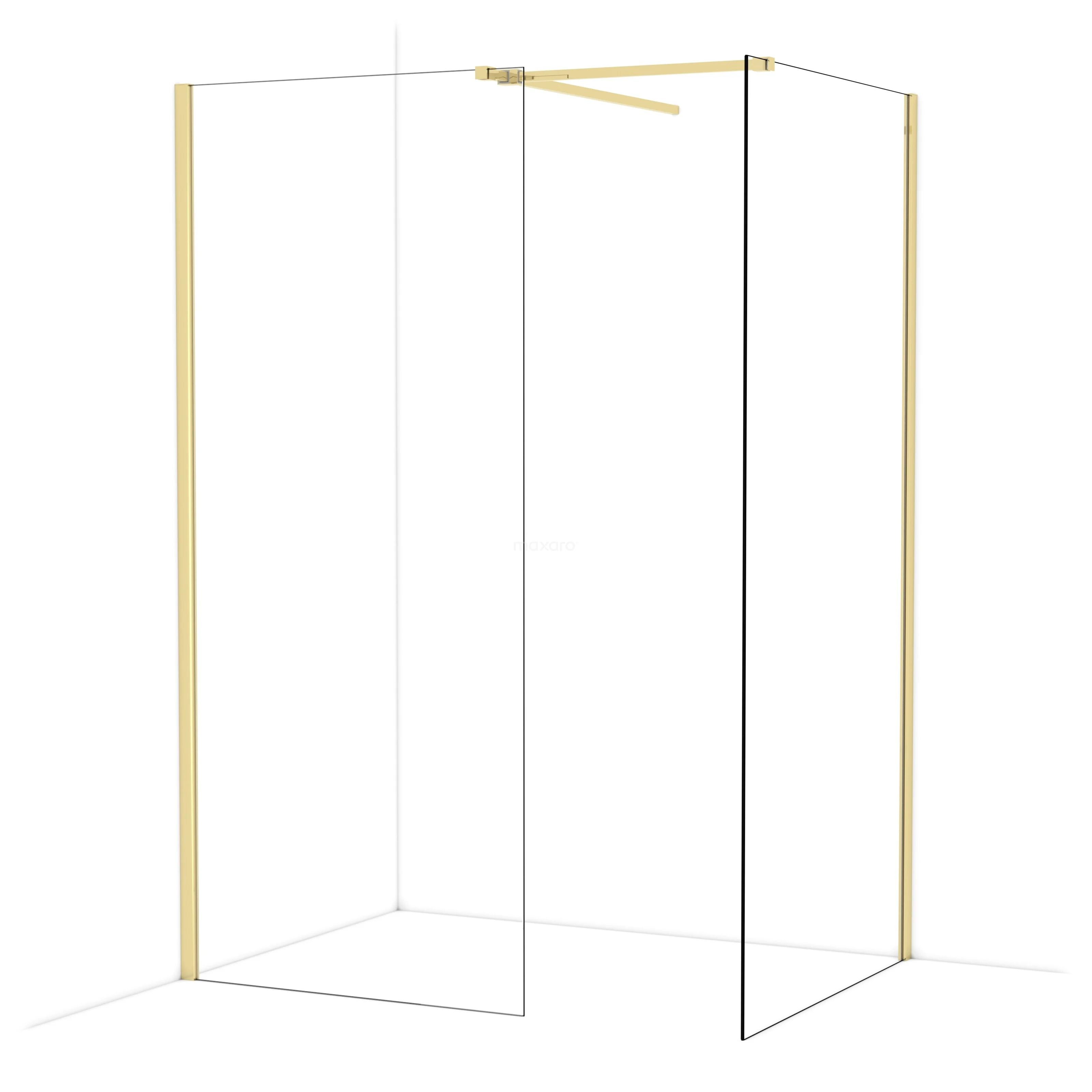 In der stilvollen begehbaren Dusche Diamond mit den Maßen 100x90 cm können Sie jeden Tag herrliche Duschsitzungen genießen. Sie hat ein raffiniertes und luxuriöses Design in glänzendem Hellgold und verfügt über Klarglas für ein großzügiges Raumgefühl.