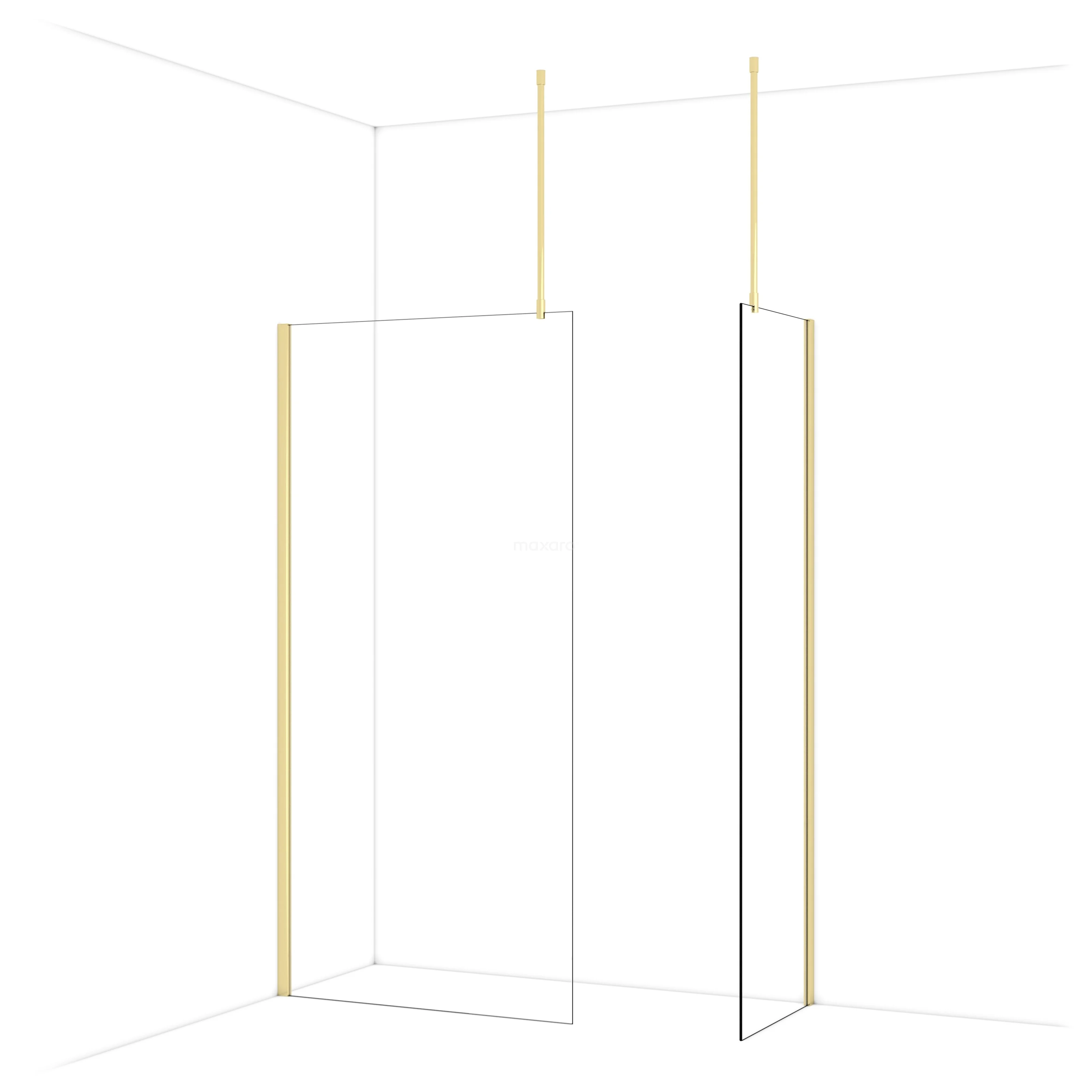 In der stilvollen begehbaren Dusche Diamond mit den Maßen 100x60 cm können Sie jeden Tag herrliche Duschsitzungen genießen. Sie hat ein raffiniertes und luxuriöses Design in glänzendem Hellgold und verfügt über Klarglas für ein großzügiges Raumgefühl.