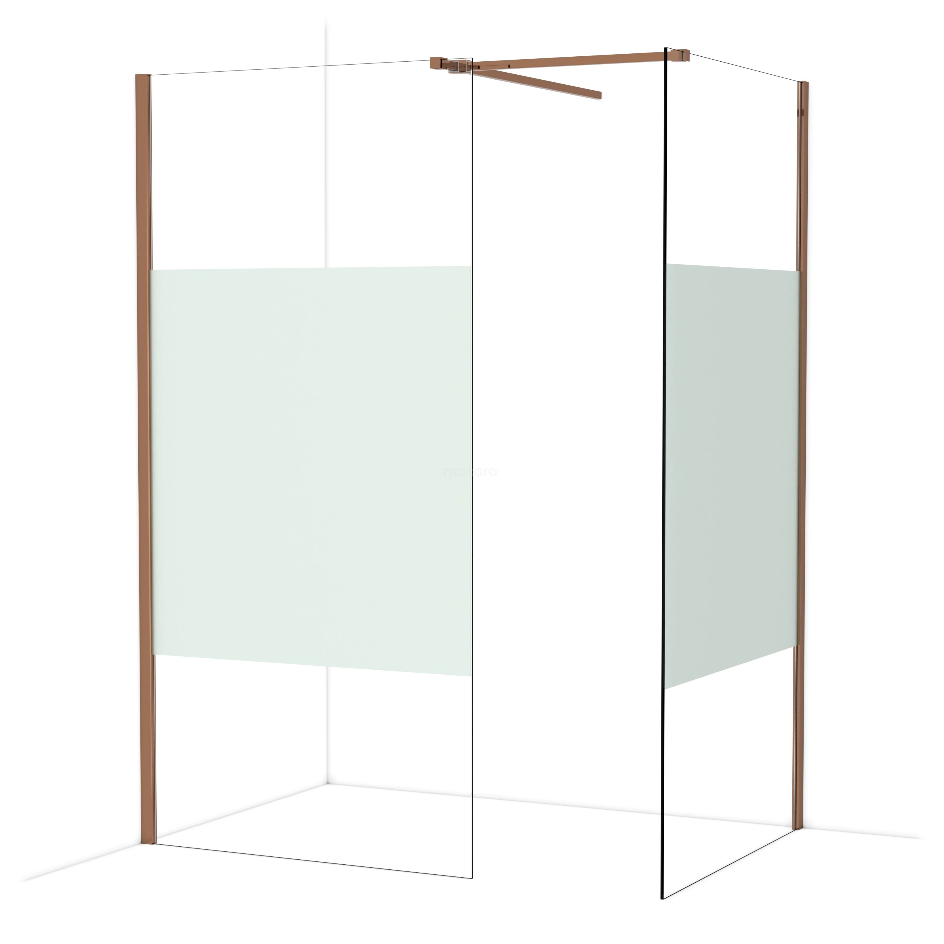 In der stilvollen begehbaren Dusche Diamond mit den Maßen 100x100 cm können Sie jeden Tag herrliche Duschsitzungen genießen. Sie hat ein auffälliges Design aus glänzendem Kupfer und verfügt über Klarglas mit Mattstreifen für mehr Privatsphäre.