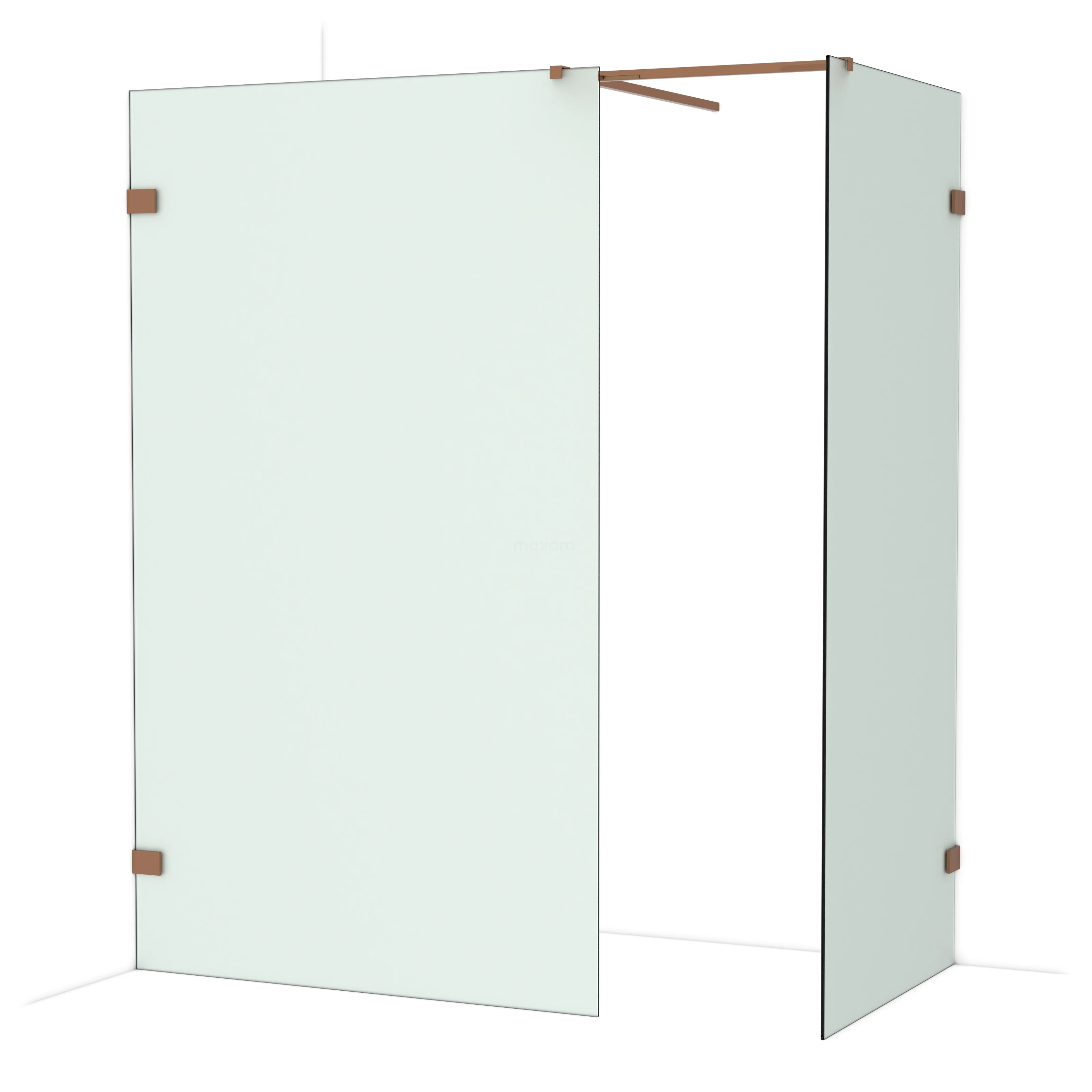 De glaswand is gespiegeld te monteren.