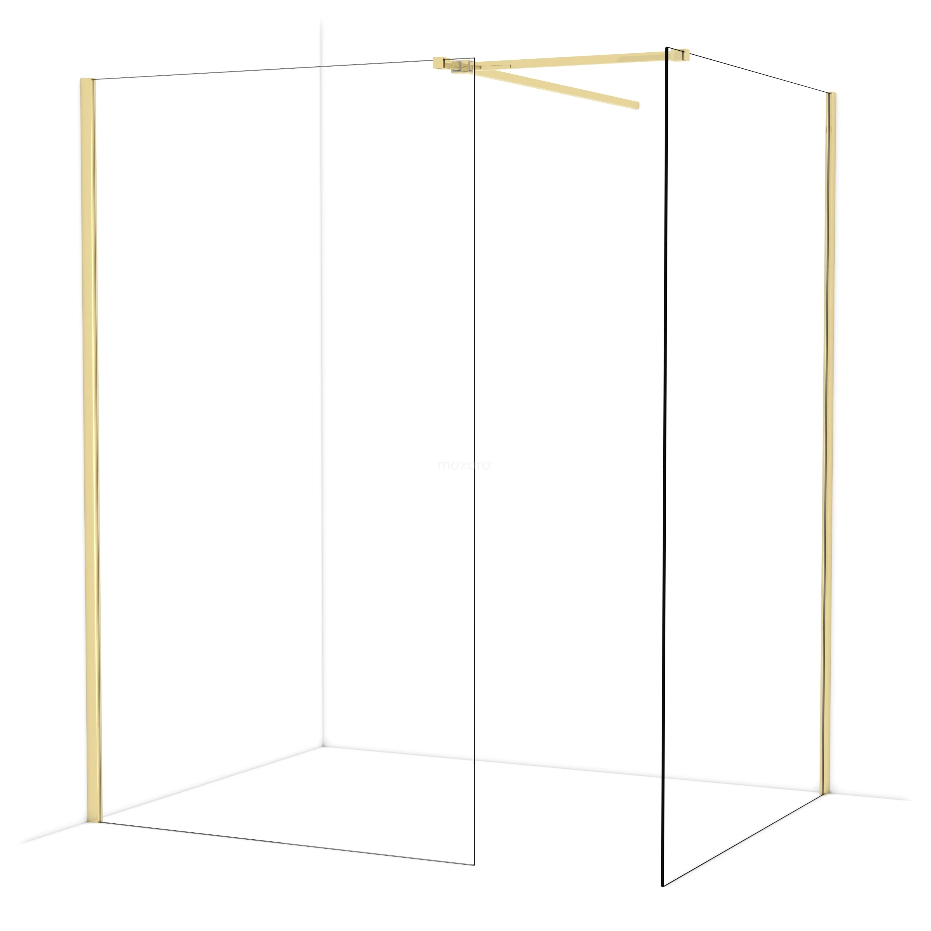 In der stilvollen begehbaren Dusche Diamond mit den Maßen 130x120 cm können Sie jeden Tag herrliche Duschsitzungen genießen. Sie hat ein raffiniertes und luxuriöses Design in glänzendem Hellgold und verfügt über Klarglas für ein großzügiges Raumgefühl.