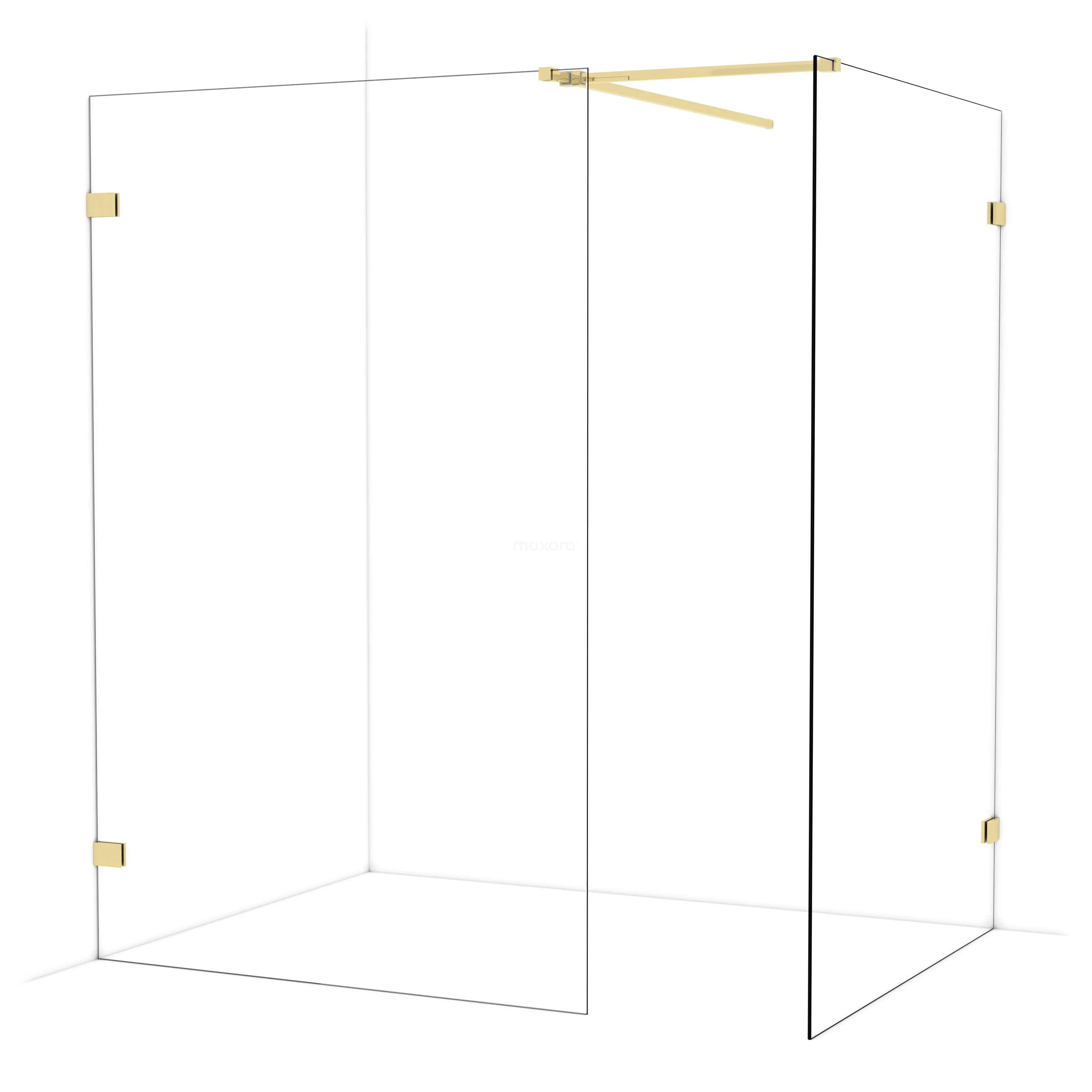 In der stilvollen begehbaren Dusche Diamond mit den Maßen 130x130 cm können Sie jeden Tag herrliche Duschsitzungen genießen. Sie hat ein raffiniertes und luxuriöses Design in glänzendem Hellgold und verfügt über Klarglas für ein großzügiges Raumgefühl.