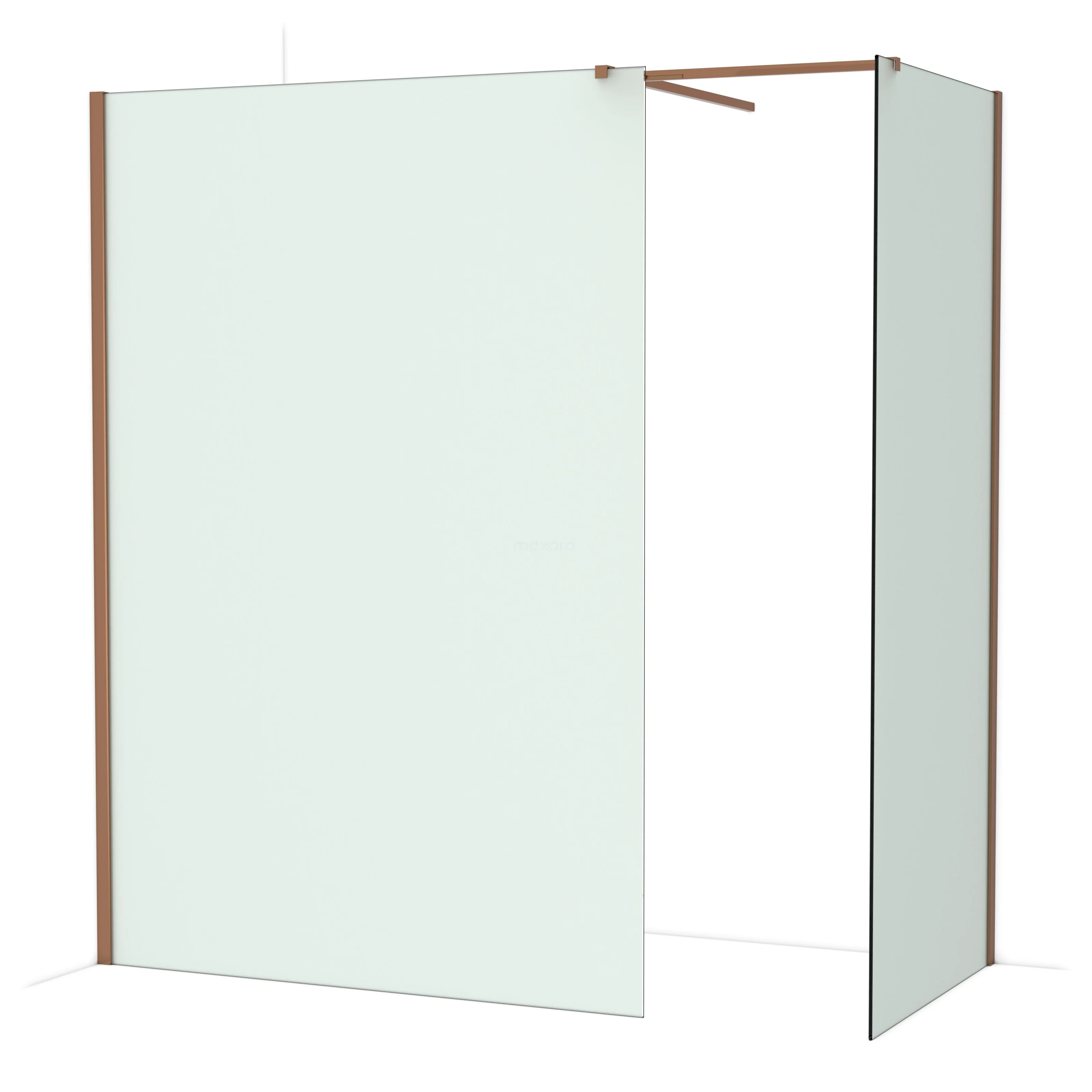 In der stilvollen begehbaren Dusche Diamond mit den Maßen 140x90 cm können Sie jeden Tag herrliche Duschsitzungen genießen. Sie hat ein auffälliges Design aus glänzendem Kupfer und verfügt über Milchglas für optimale Privatsphäre.