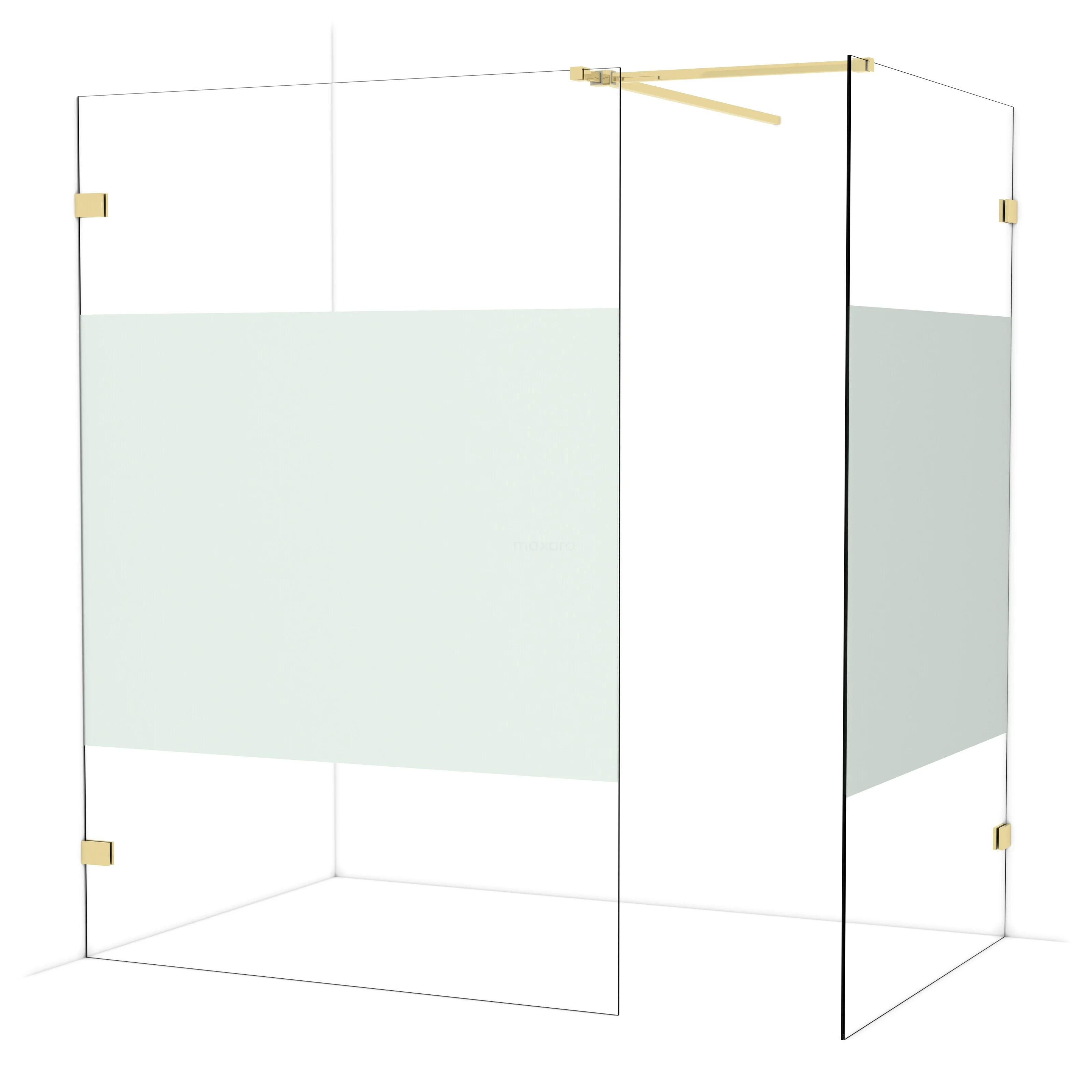 In der stilvollen begehbaren Dusche Diamond mit den Maßen 140x120 cm können Sie jeden Tag herrliche Duschsitzungen genießen. Sie hat ein raffiniertes und luxuriöses Design in glänzendem Hellgold und verfügt über Klarglas mit mattem Streifen für mehr Privatsphäre.
