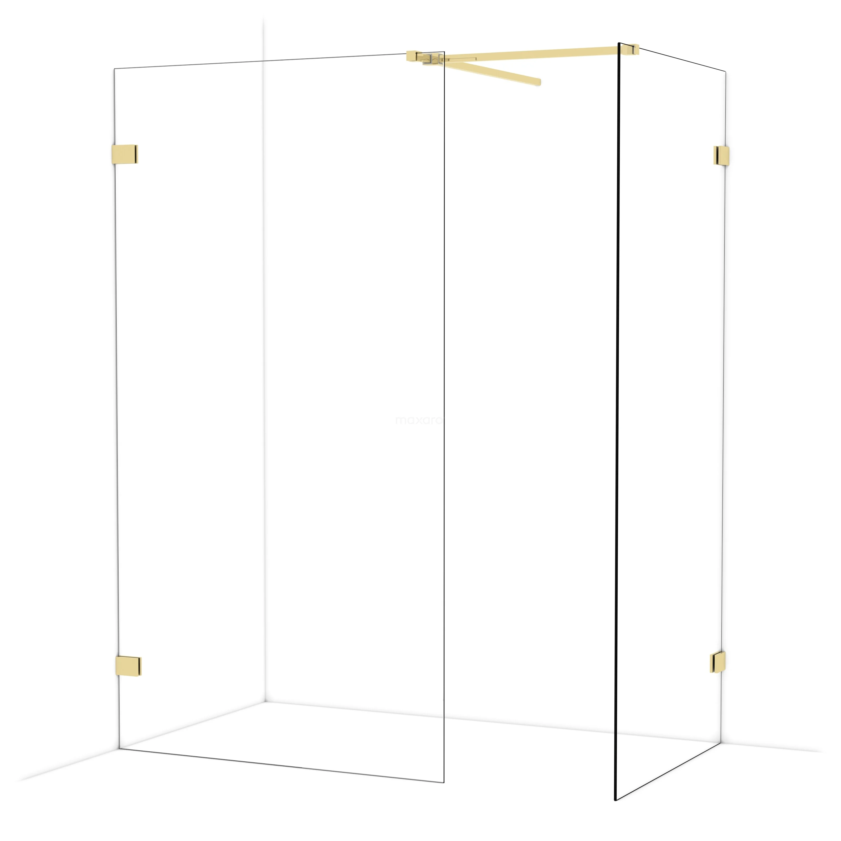 In der stilvollen begehbaren Dusche Diamond mit den Maßen 110x90 cm können Sie jeden Tag herrliche Duschsitzungen genießen. Sie hat ein raffiniertes und luxuriöses Design in glänzendem Hellgold und verfügt über Klarglas für ein großzügiges Raumgefühl.