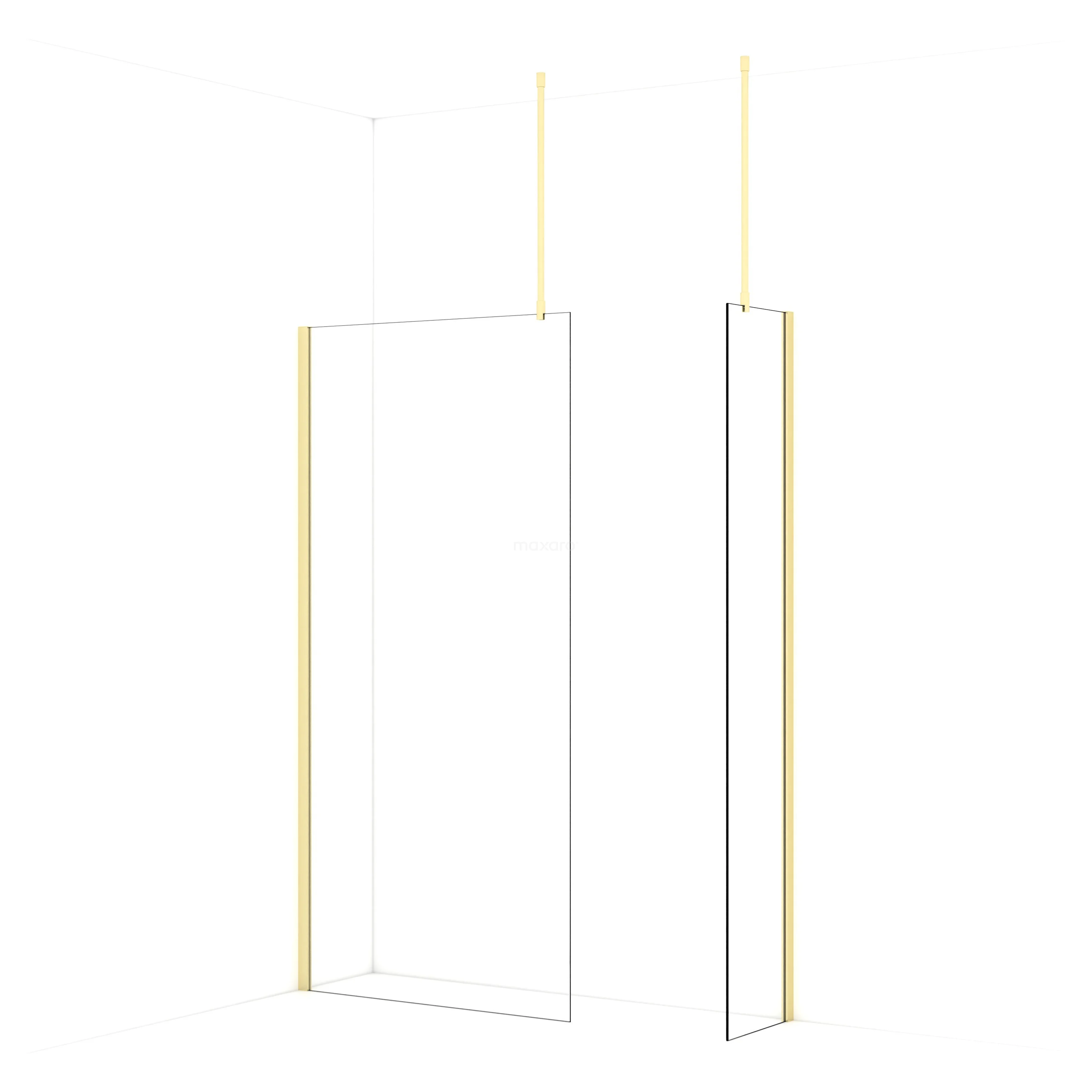 De glaswand is gespiegeld te monteren.