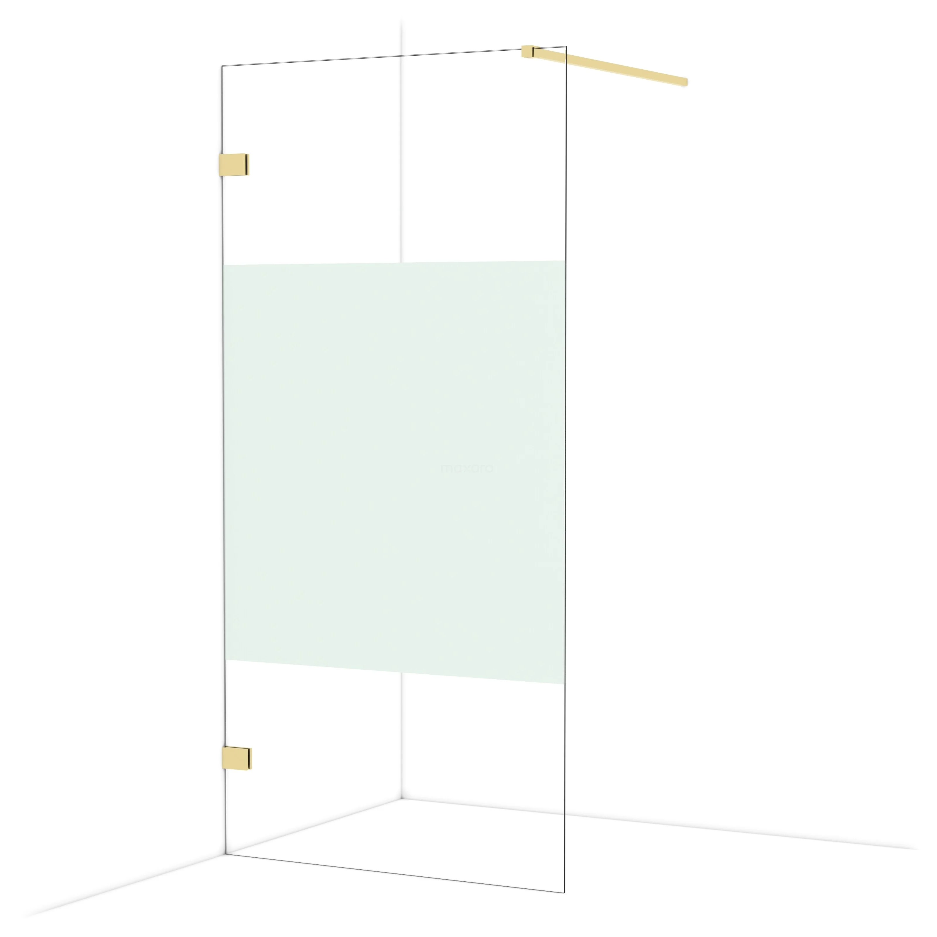 In der stilvollen begehbaren Dusche Diamond mit einer Größe von 100 cm können Sie jeden Tag wunderbare Duschsitzungen genießen. Sie hat ein raffiniertes und luxuriöses Design in glänzendem Hellgold und verfügt über Klarglas mit mattem Streifen für mehr Privatsphäre.