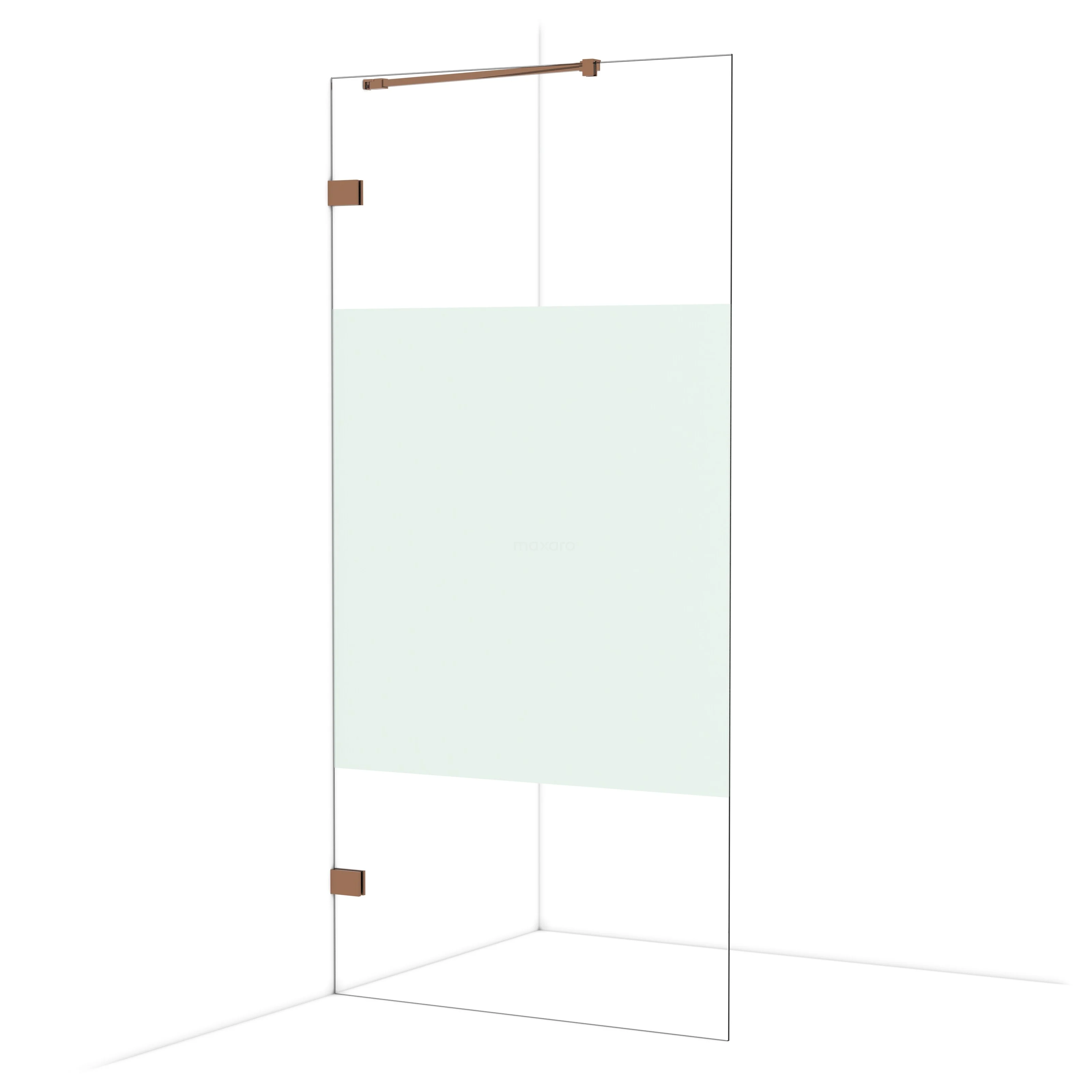 In der stilvollen begehbaren Dusche Diamond mit einer Größe von 100 cm genießen Sie jeden Tag herrliche Duschsitzungen. Sie hat ein auffälliges Design aus glänzendem Kupfer und verfügt über Klarglas mit mattem Streifen für mehr Privatsphäre.