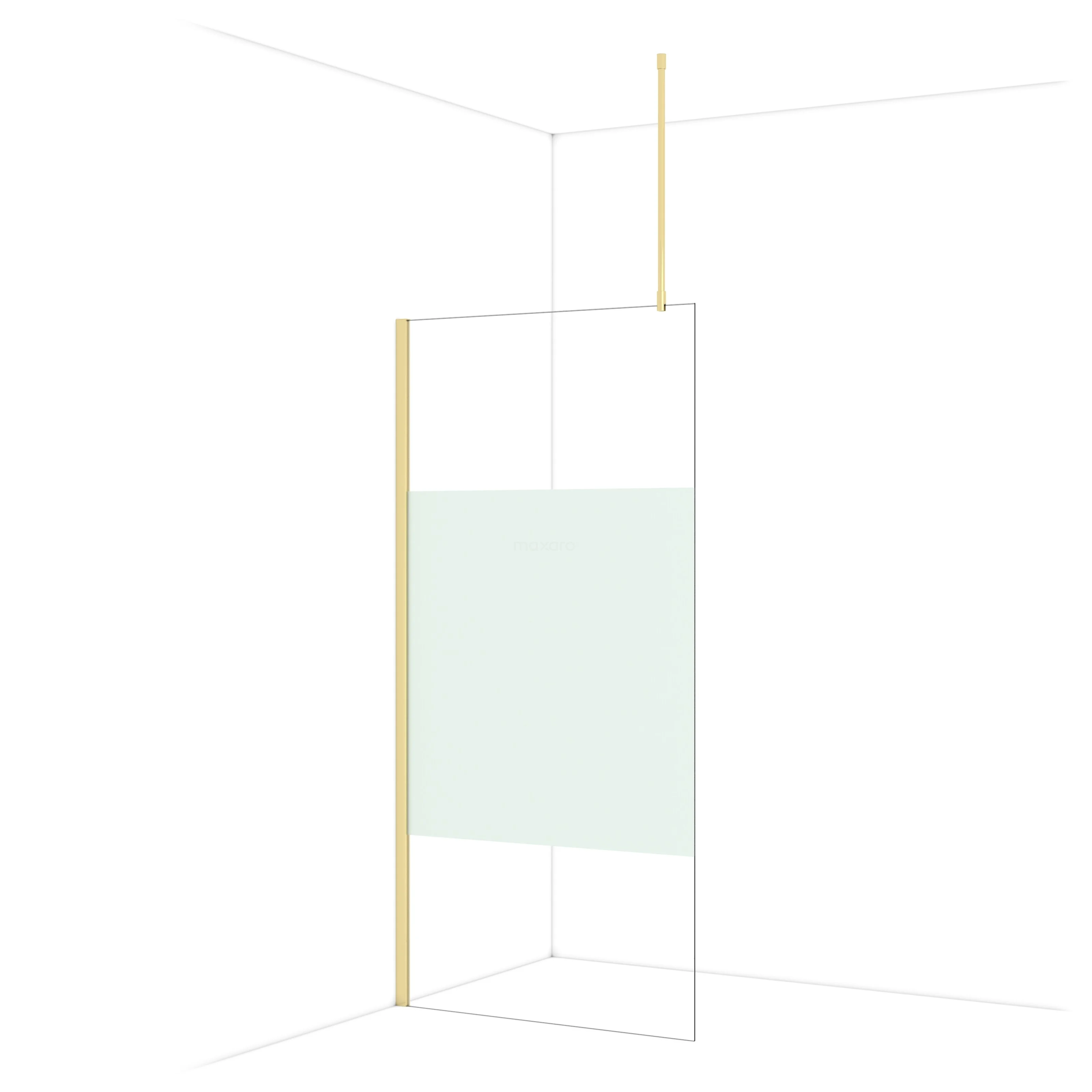 In der stilvollen begehbaren Dusche Diamond mit einer Größe von 100 cm können Sie jeden Tag wunderbare Duschsitzungen genießen. Sie hat ein raffiniertes und luxuriöses Design in glänzendem Hellgold und verfügt über Klarglas mit mattem Streifen für mehr Privatsphäre.